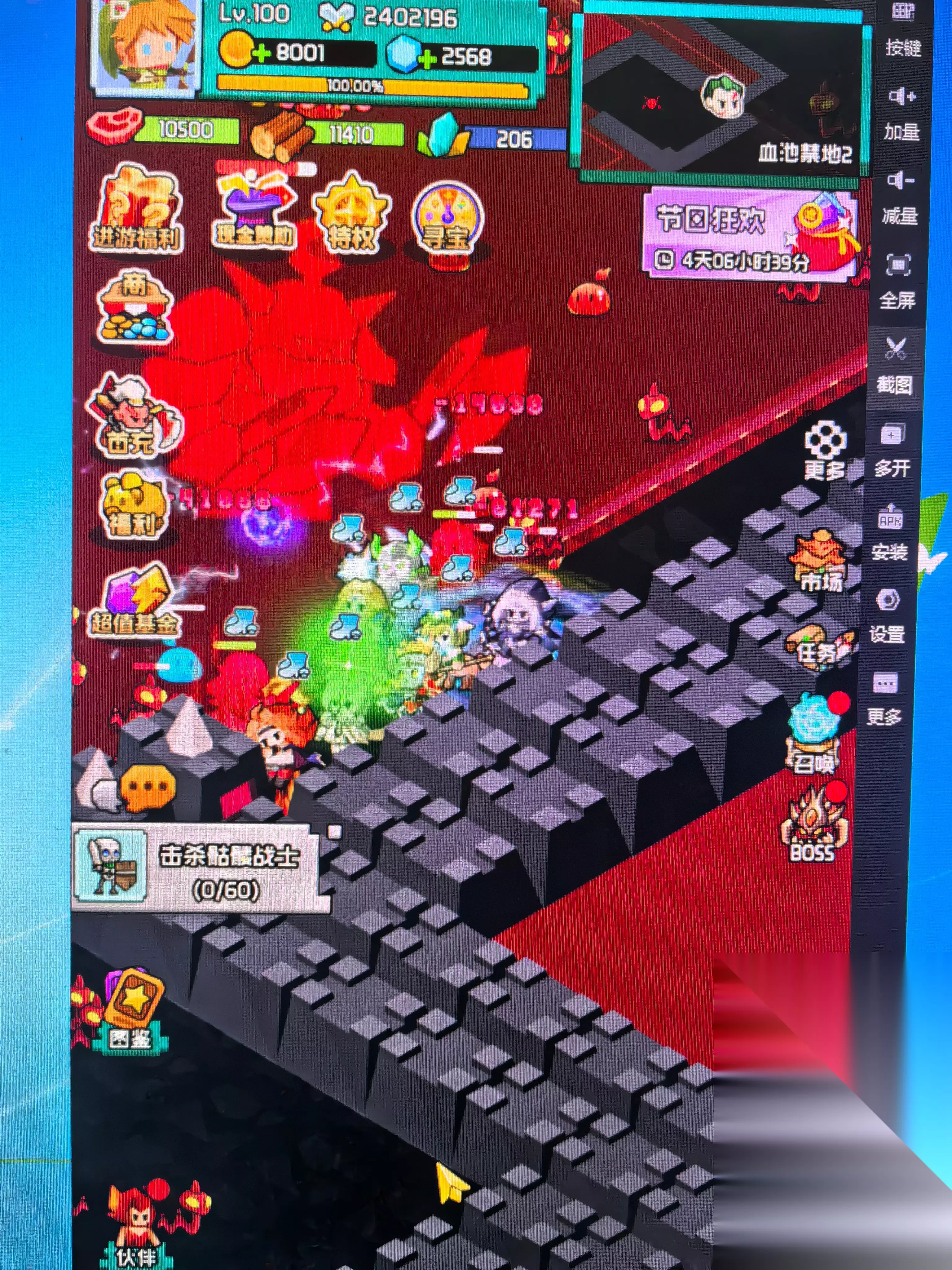 艾伦大陆嗜血兽人打法攻略 第三章比第二章难很多,战力低清不动小怪,小怪太密集直接卡屏死机。而且试了很多位置小怪都无法被骨王吸引走,挂机打就会导致团灭,基本就是一波输出-被小怪团灭-小怪去找骨王-一波输出-被复活复活团灭的死循环,不卡屏的话,挂很久很久就打死了。我打了不少于20次,次次卡屏死机,升了好几天战力才好一点。 建议150w左右开始尝试 依然墙角输出 不要尝试操作,死了就等复活,越拉怪越容易卡屏