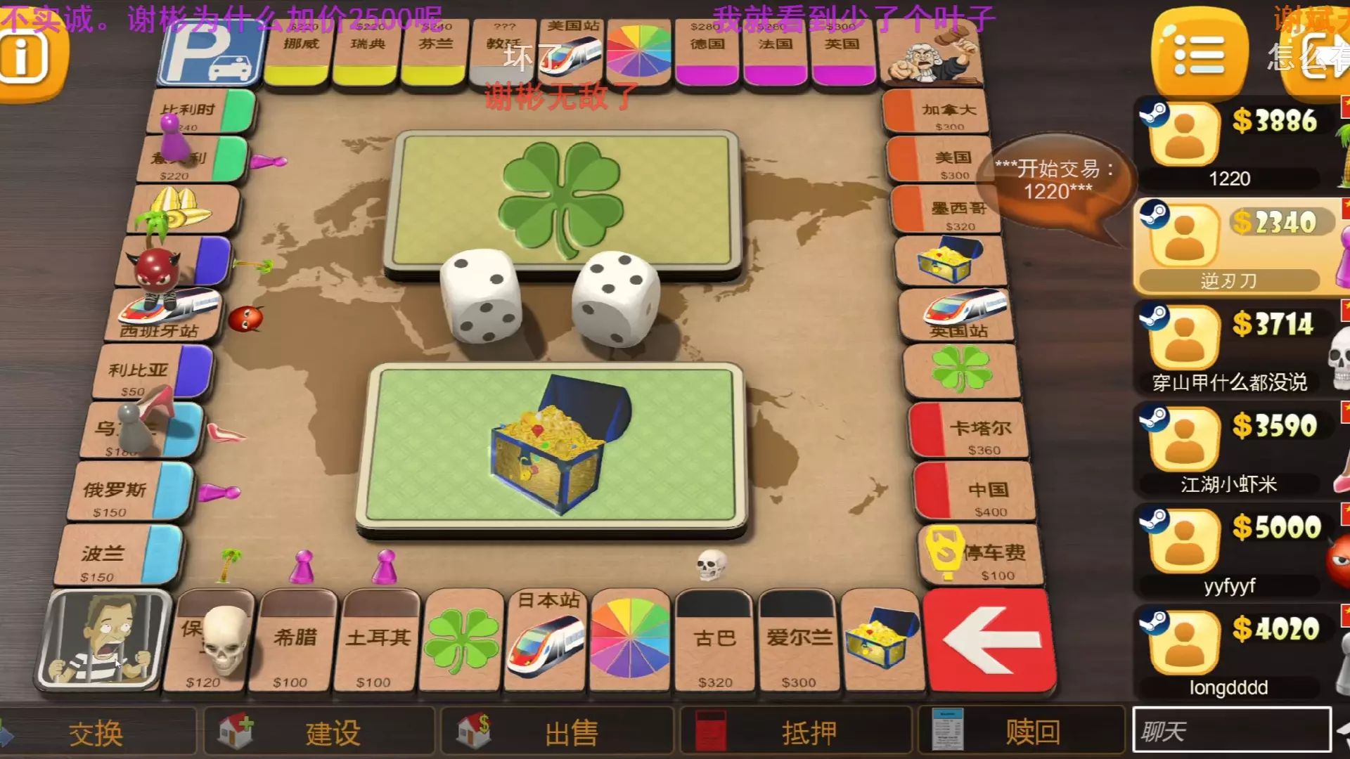 这是一场大富翁游戏对局,老前辈教学右手玩家玩大富翁,对局中展示了竞拍、道具使用等大富翁玩法流程,多位玩家参与这场线上大富翁对局,最终枫哥成功成为万元户,拿下不错的对局成绩。