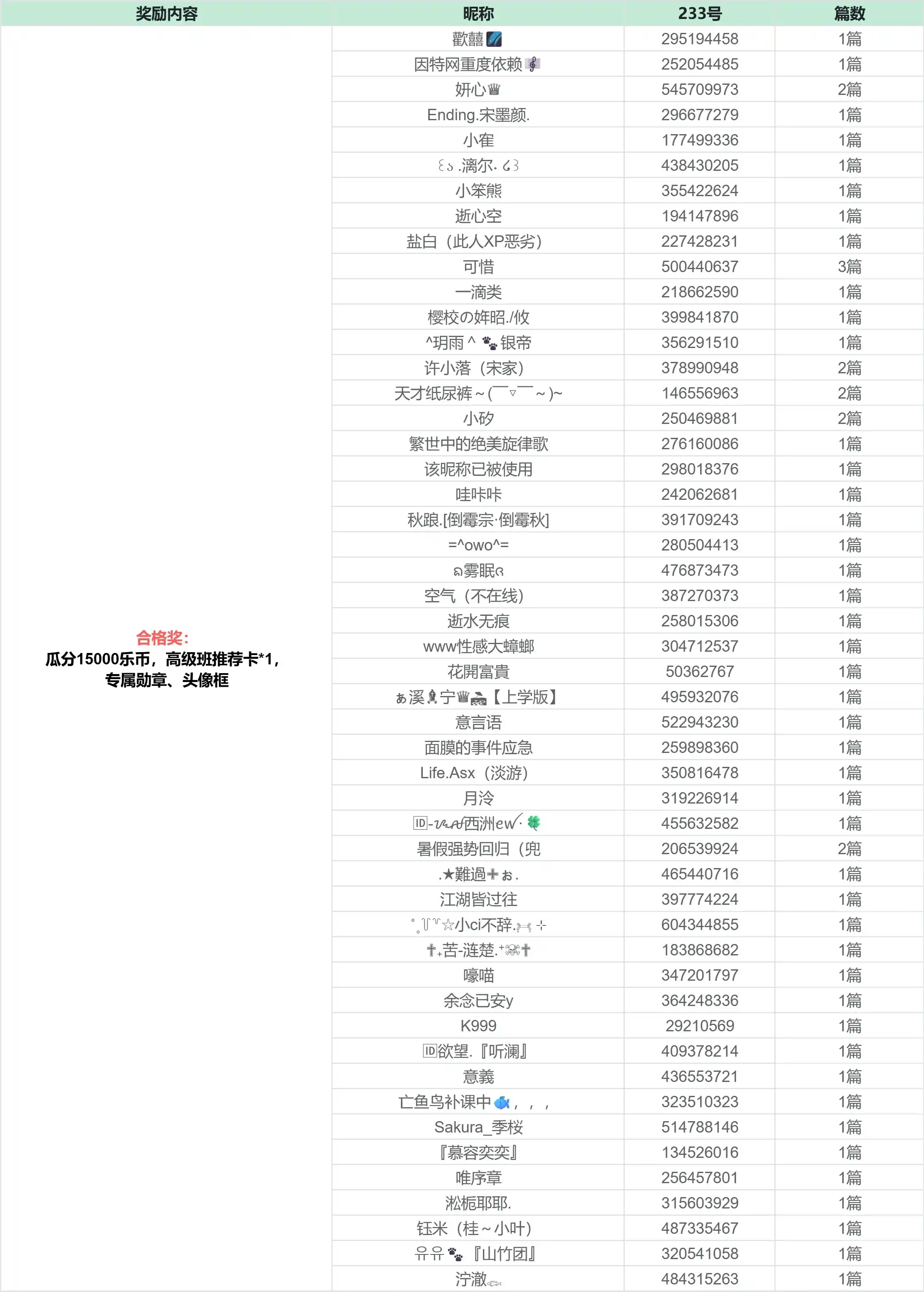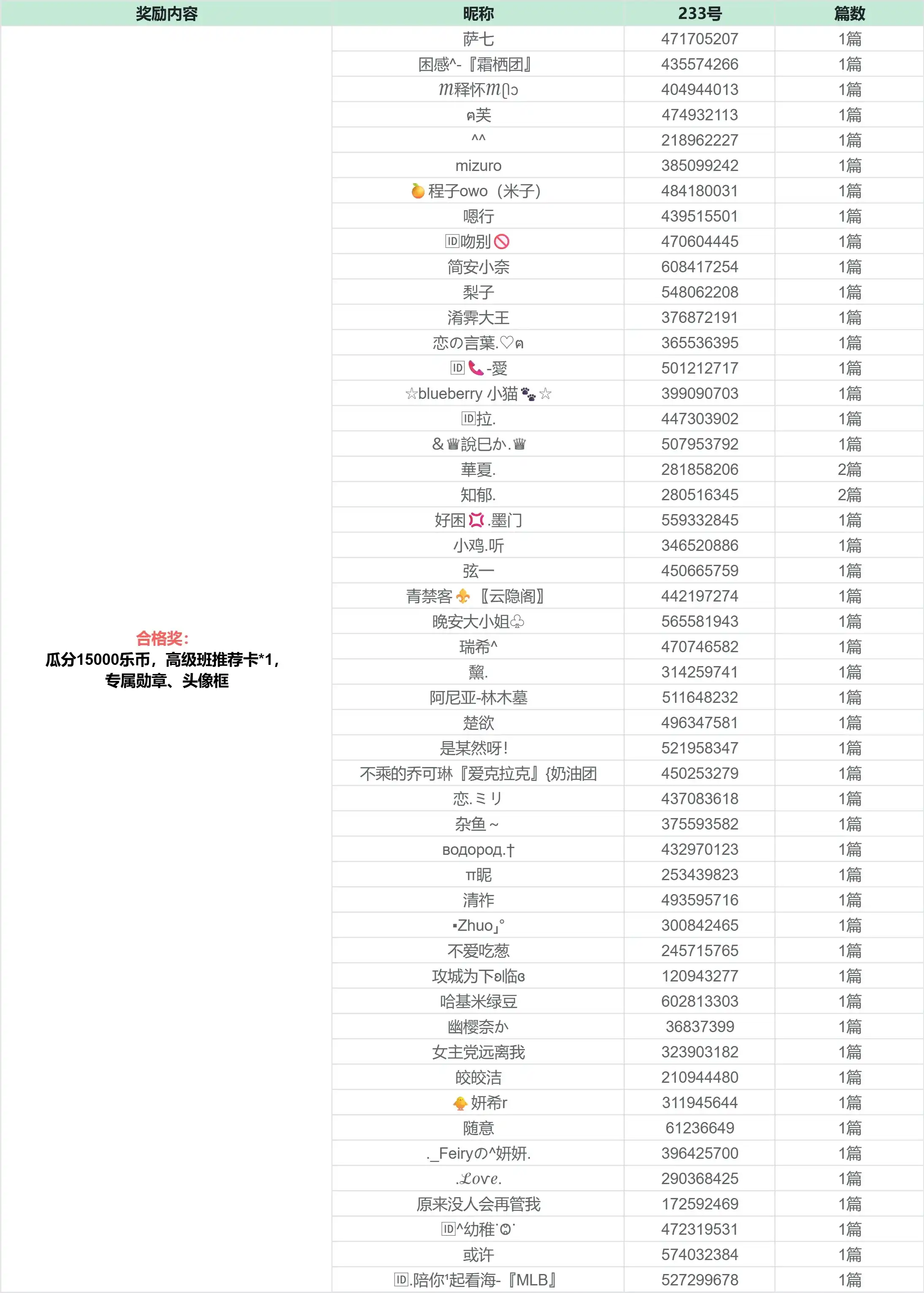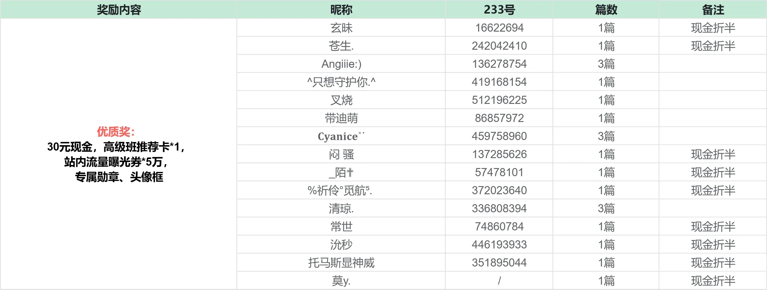 恭喜以下创作者获奖!获奖公示期为3天,如有异议请在公示期内提出,奖励将在14个工作日内发放
