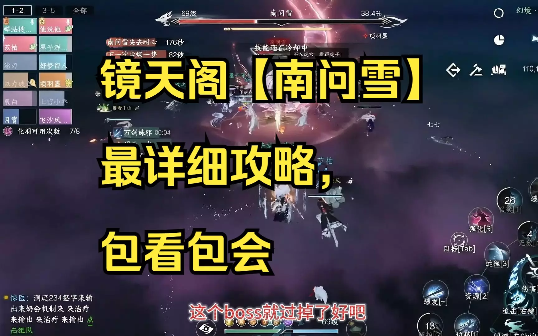 这是逆水寒手游的内容,分享了镜天阁老三南问雪的通关攻略与完整版视频,展示了战斗过程、技能应对等内容,打完还剩100多秒,提及该BOSS对输出有要求但无需焦虑,博主每晚19-23点不定期直播。