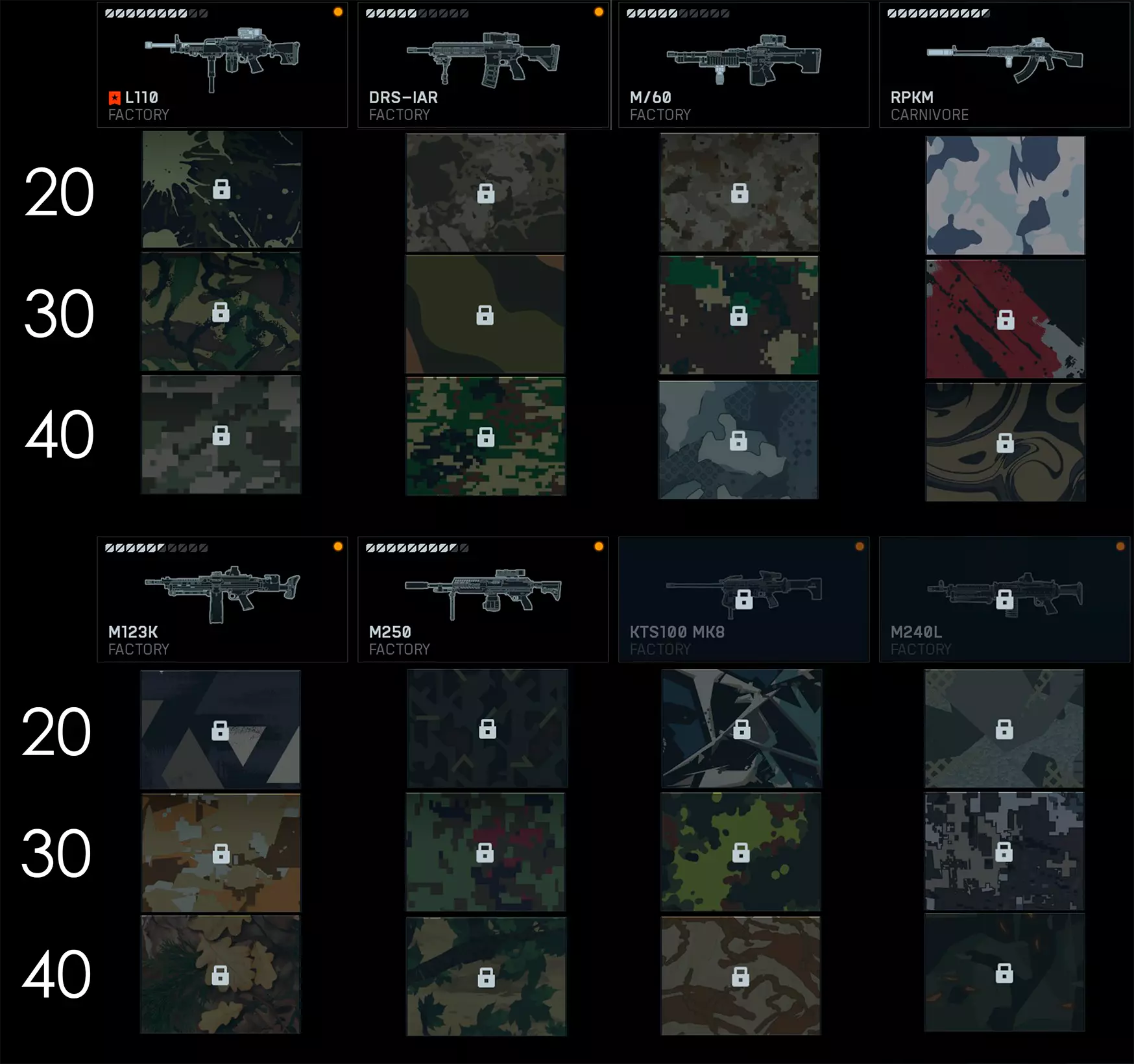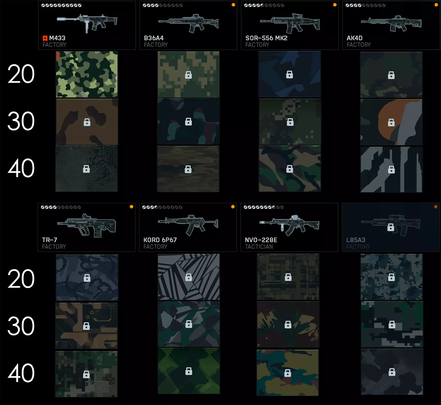 这里方便地汇总了游戏中所有武器的迷彩 :D 更新 已添加第1赛季的迷彩和武器 - 2025年12月03日 突击步枪