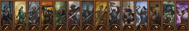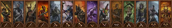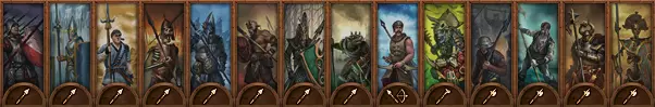 DPS步兵:专注于造成伤害而非生存能力的步兵。通常无盾牌;常装备双持武器或双手武器。 最适合在敌人已陷入战斗时从侧翼发动攻击。 理想的初始位置是在盾墙后方靠近左右两端处,既能得到保护,又可随时准备侧袭。 由于没有盾牌,他们更容易受到远程攻击,近战防御也较低。 双持武器对步兵有加成,更擅长消灭大量轻甲部队。 双手武器拥有破甲攻击,可用于对付更强大的单位。