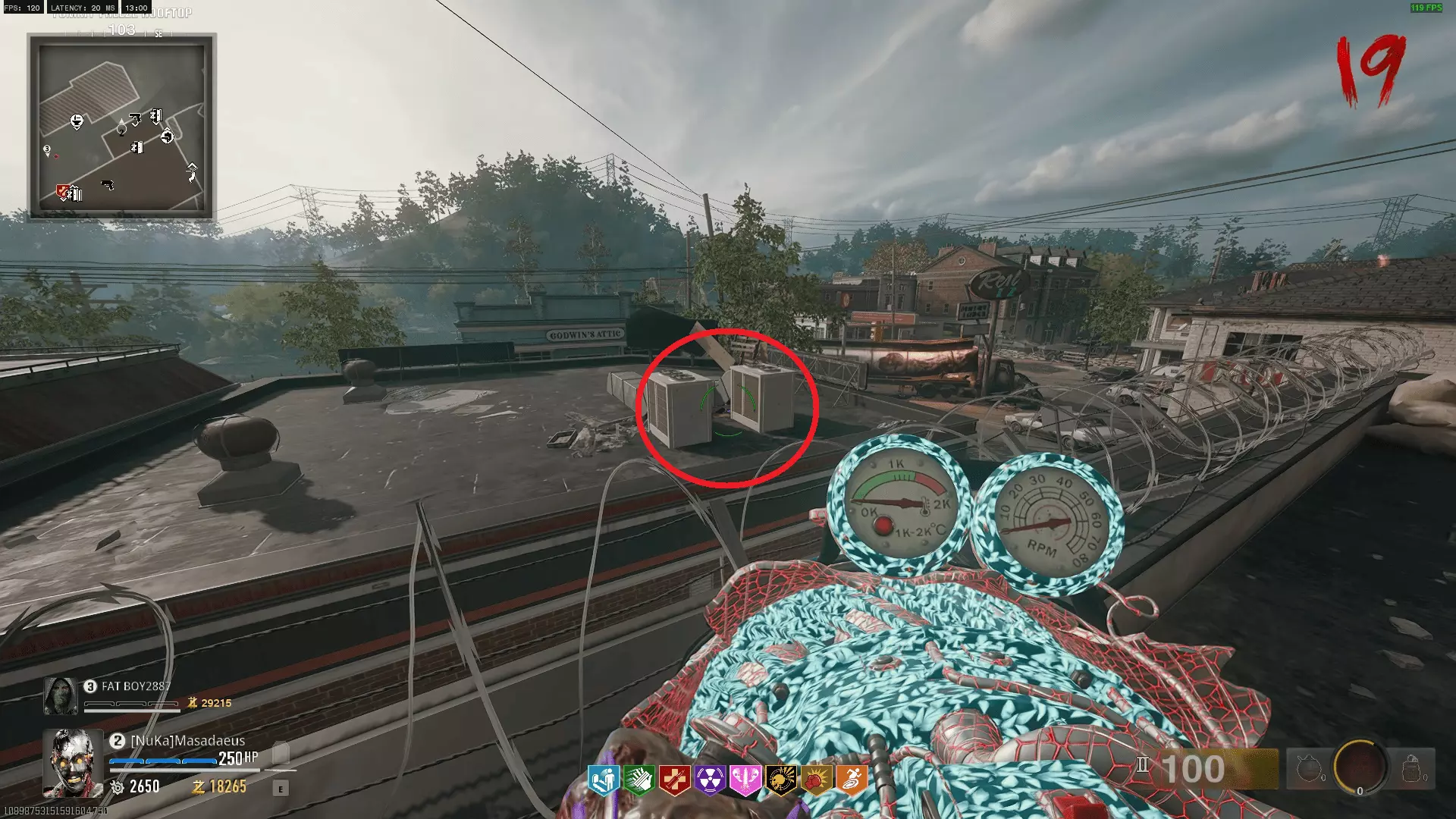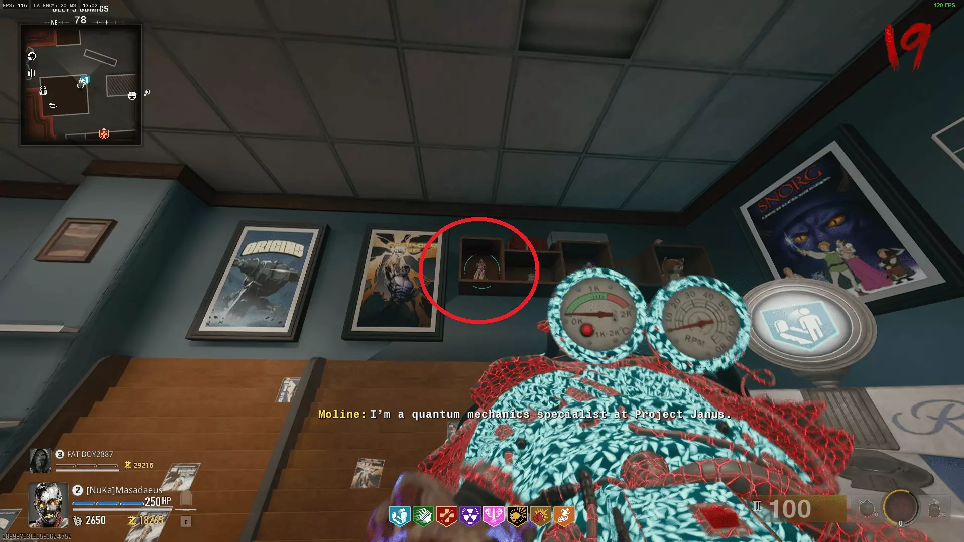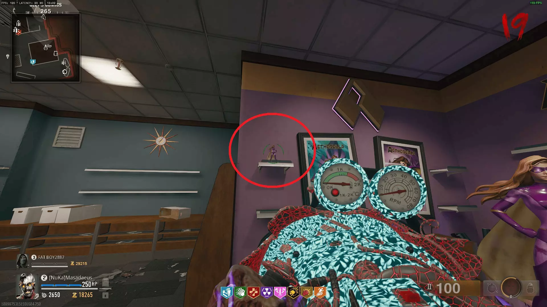 在自由瀑布,释放你的超级反派一面。首先,你需要建造喷射枪,或者说这张地图的奇迹武器。它相当简单,因此我不会过多赘述。其零件位置如下: 水压表——从速度可乐旁花店旁边的水管上取下阀门,将其安装到保龄球馆的灭火系统中即可获得。你需要摇动它约30秒,期间会有僵尸向你袭来。松开手时进度会保存,所以你可以在操作间隙自由击杀僵尸。 手刹——在教堂旁的墓地中击杀特定的场地管理员以获取钥匙。在该区域击杀僵尸,他最终会刷新,将其击杀后即可拿到钥匙。然后前往制作台旁边的小屋,打开它就能找到零件。 电线——在出生点外的电子产品商店里,银行对面。建造一门绞肉机炮,或者让绞肉机炮射击商店的卷帘门。然后摇摇晃晃地进去,开始挖掘该区域周围的土堆。零件就在其中一个土堆里。 接着前往出生点汽车旅馆的楼上房间,在那个所有僵尸都会跑出来的房间里建造喷射枪。 figurines现在你需要做的是在地图各处找到九个 figurines。我会尽量让路线不那么繁琐。按照下面的截图和顺序进行: 保龄球馆 >> 教堂 >> 速度可乐屋顶 >> 银行屋顶 >> 出生点 >> 街机厅