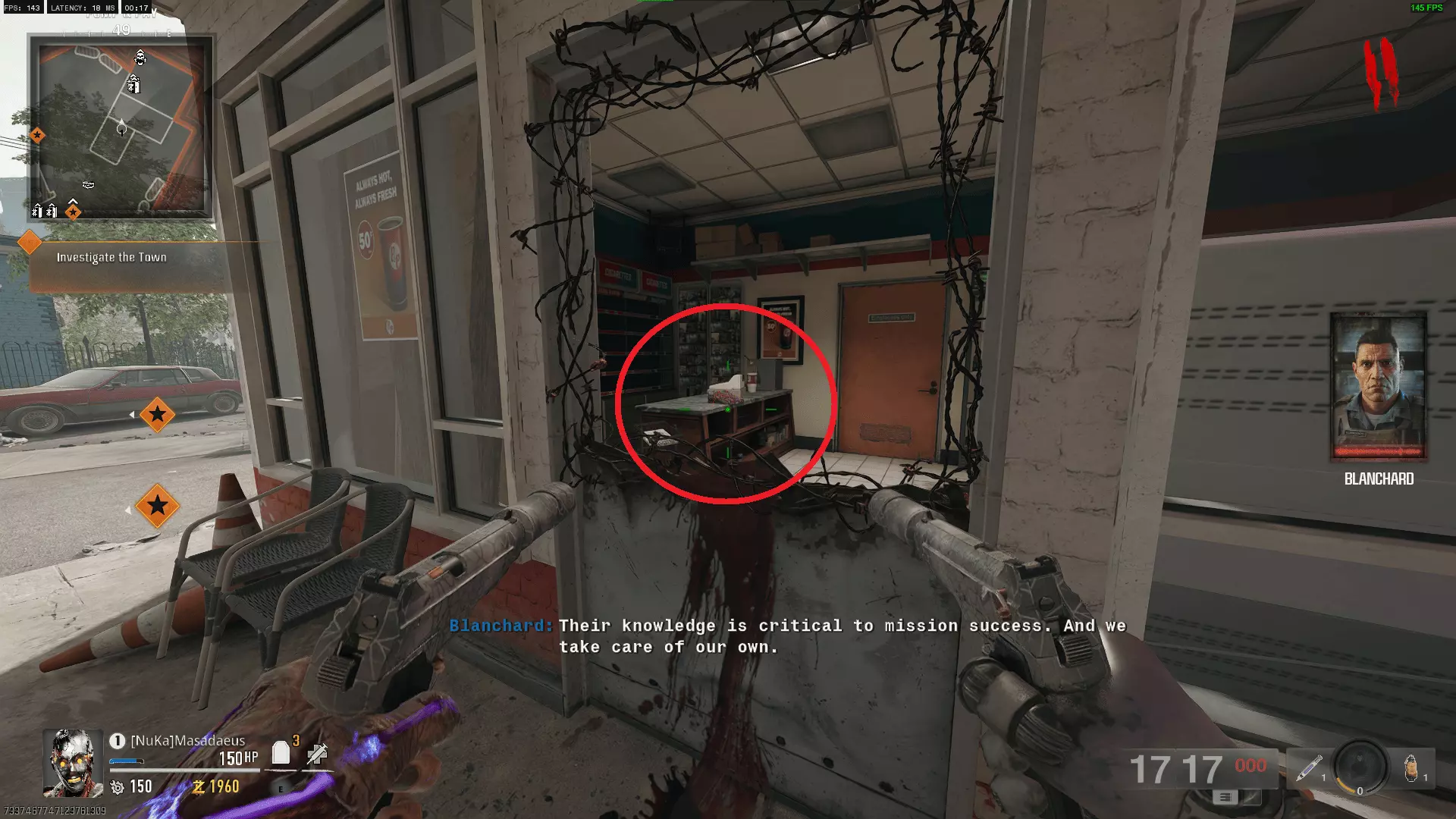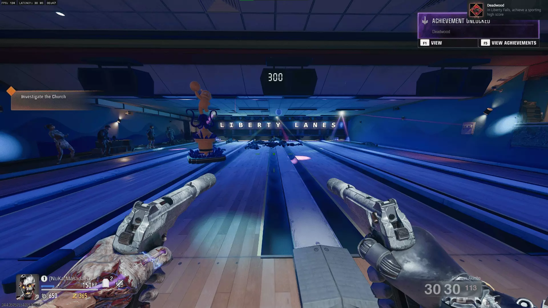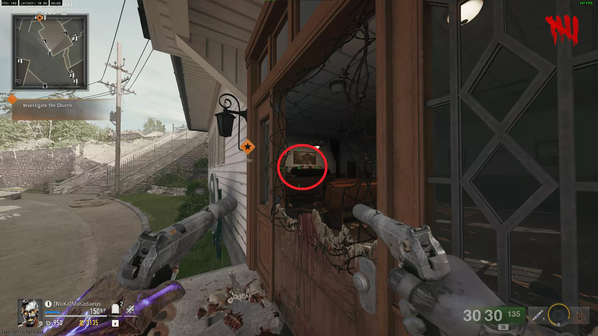 在自由瀑布(Liberty Falls)中达成运动高分 这并不像听起来那么困难,300分的目标并不难达成,完成后除了成就外还能获得一张黑色行动(Dark Ops)名片,可谓一举两得。只需稍加练习即可。瞄准僵尸群,蓄力击球以击中多个目标。 你只需在地图中找到并射击5双鞋子。之后你将被传送到保龄球馆,在那里可以尽情消灭僵尸。鞋子的位置如下: 在出生点的加油站,查看隔离窗内的收银台上即可找到。在弗兰克五金店,电器商店的左侧,障碍物右侧的市场货架上。在通往教堂的小山上的一栋房子里,右侧有通往前门的楼梯,它们在障碍物右侧的椅子下面。在墓地的尽头,三级甲(Tier 3 armour)挂在树旁。在保龄球馆对面的本森殡葬服务大楼里,障碍物最左侧的一幅画下面的棺材上。以下是按上述列表从左到右顺序排列的截图。