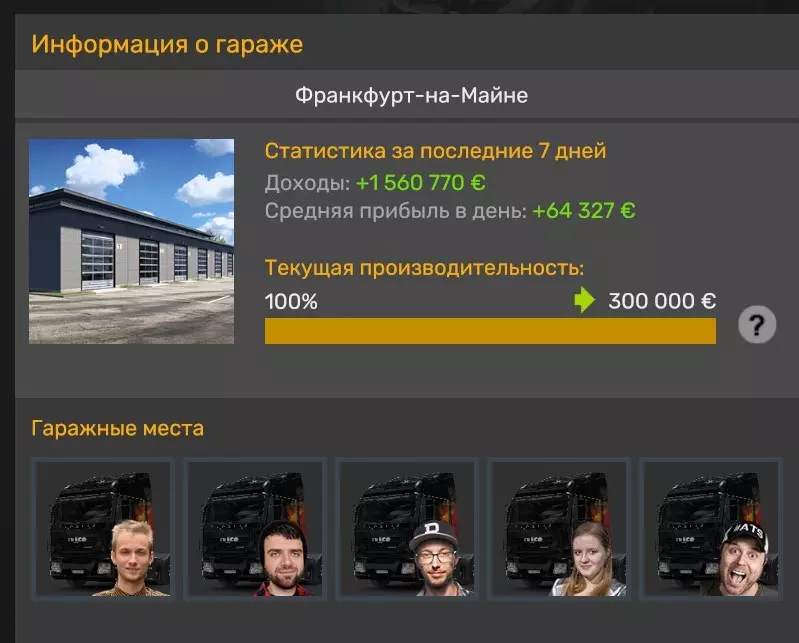 使10个大型车库的平均性能达到75%,并使5个大型车库同时达到100%的生产力。只需等待,但理论上员工的装备越好,他们获得宝贵经验的速度就越快。您在车库概览菜单中看到的评分并非此指标。例如,拥有5辆卡车的车库每周应产生300,000欧元,这才是您需要达到的指标。
