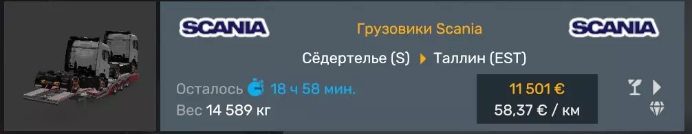 将斯堪尼亚(Scania)工厂的新设备交付给该品牌的官方经销商。完成来自锡德特尔耶的斯堪尼亚工厂到斯堪尼亚汽车展厅的订单。浏览各种论坛时,我注意到许多玩家在完成此成就时遇到困难,但其实这很简单。很多人认为需要将该品牌的卡车运送到某处就能获得成就,但事实并非如此,以下是此类订单的示例。