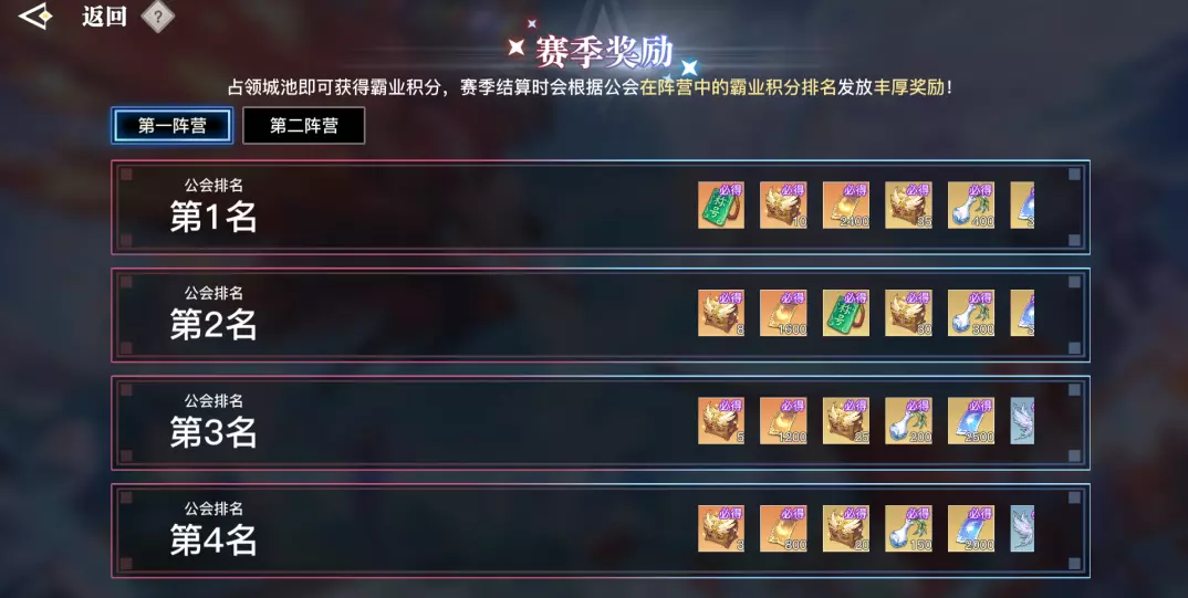 赛季奖励公平性再升级!公会霸业积分分数相同时,以该分数的最低排名发放奖励。在发奖区间的最后一个区间,如果公会霸业积分分数相同,按最高排名发放奖励。排名奖励发放规则更公平,全靠实力说话!
