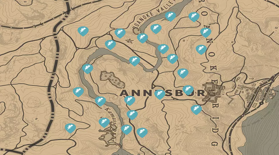 卵叶越橘 | 常青越橘 卵叶越橘灌木很容易通过常绿针状叶和黑色浆果来识别。这种灌木生长在流经莱莫因和新汉诺威的卡马斯河岸边。浆果可以食用以恢复生命值,也可以用来制作捕食者诱饵。可以制作强效捕食者诱饵。