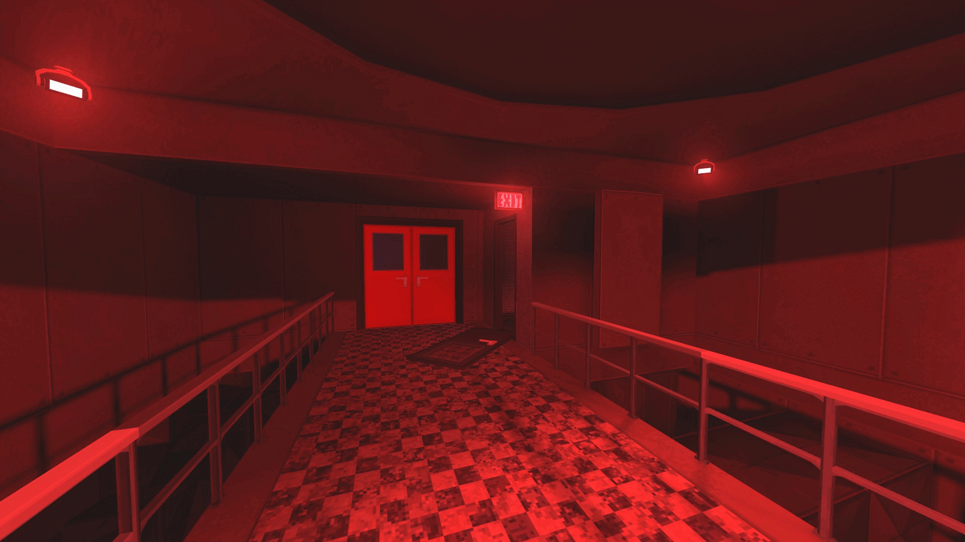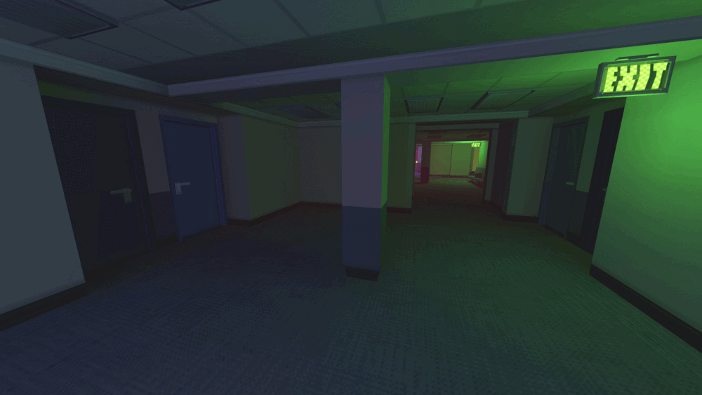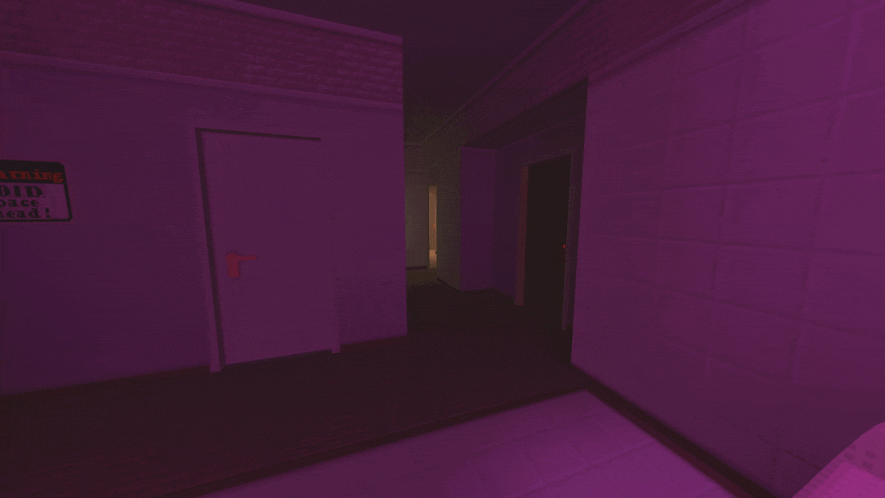 目前,这扇门暂时无法通往任何地方,但未来将通向一张新地图。一旦进入百叶窗房间,就无法离开。 被抓住 对于詹姆斯来说,抓住你十有八九是必然的。他行动迅速,会把你困在一个他比你更熟悉的迷宫里。如果你最终被抓住,屏幕上会闪过一道粉色光芒,然后你会被传送到一些荒凉的混凝土走廊。 你所能做的就是向前走,沿着走廊一直走到你的最终目的地。 地图剧透//这条路通向“另一面”。 DownCorridors (Part 1)