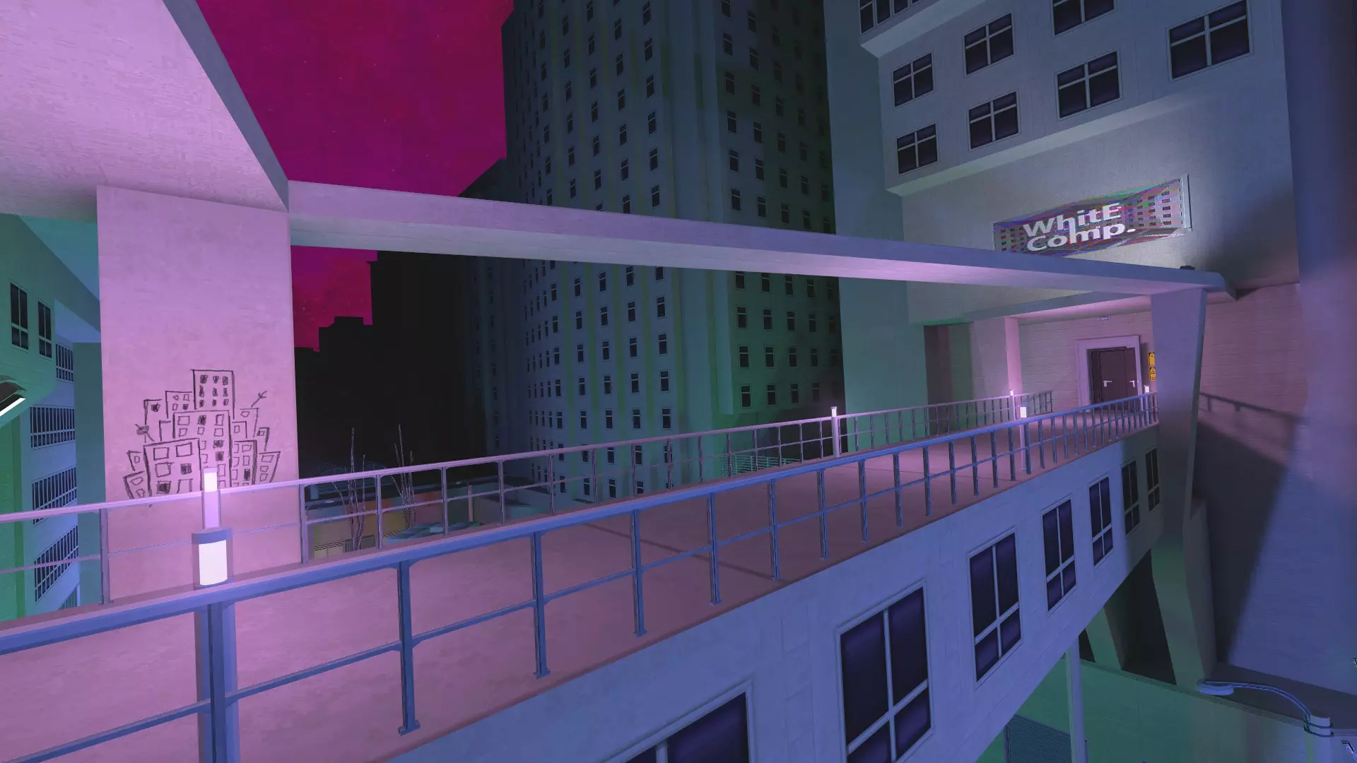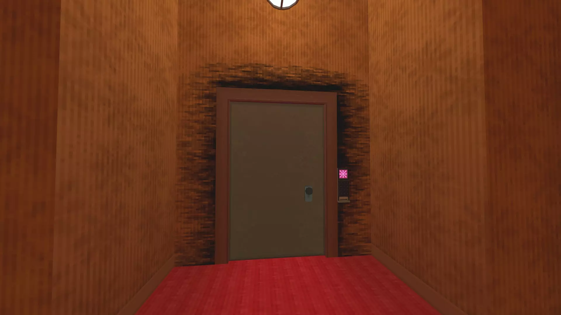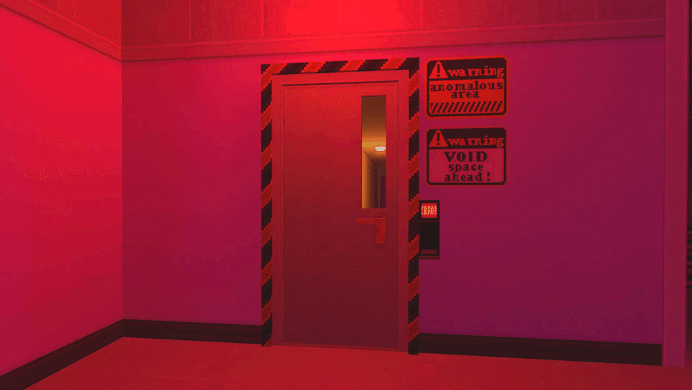 这个地方的所有东西都是同一种颜色,简直让我恶心。进入一扇之前锁着的门,穿过一条狭窄且俗艳的亮粉色走廊后,你会发现来路被锁死,被困在了“粉色空间”。 这里由一系列围绕着某栋公寓楼广场的不同主题走廊和房间组成。所有地方——地毯、天花板、墙壁和灯光,都呈现着那种亮粉色调。尽量别被这一切弄得恶心反胃。 ### 钥匙卡 探索粉色空间,最终你会发现一扇被玻璃隔开的大门,两扇需要钥匙卡才能打开的门挡住了你的去路。目标很简单:找到钥匙卡,打开这些门,抵达那扇更大的门。