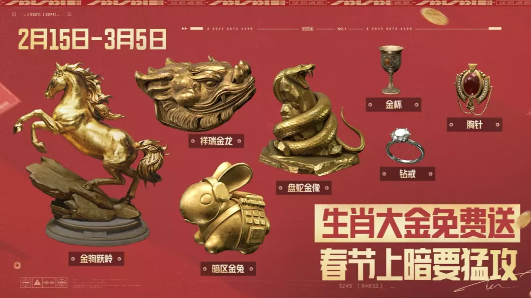 2月15日-3月5日,完成任务免费送生肖大金礼盒x20!