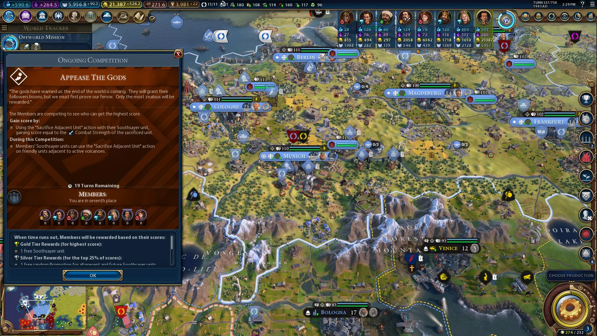大都市/Метрополіс 在回合开始时,用你拥有的区域或奇迹完全包围市政广场(同时可以解锁成就“District 12/Дванадцятий округ”,获取方式非常相似!)