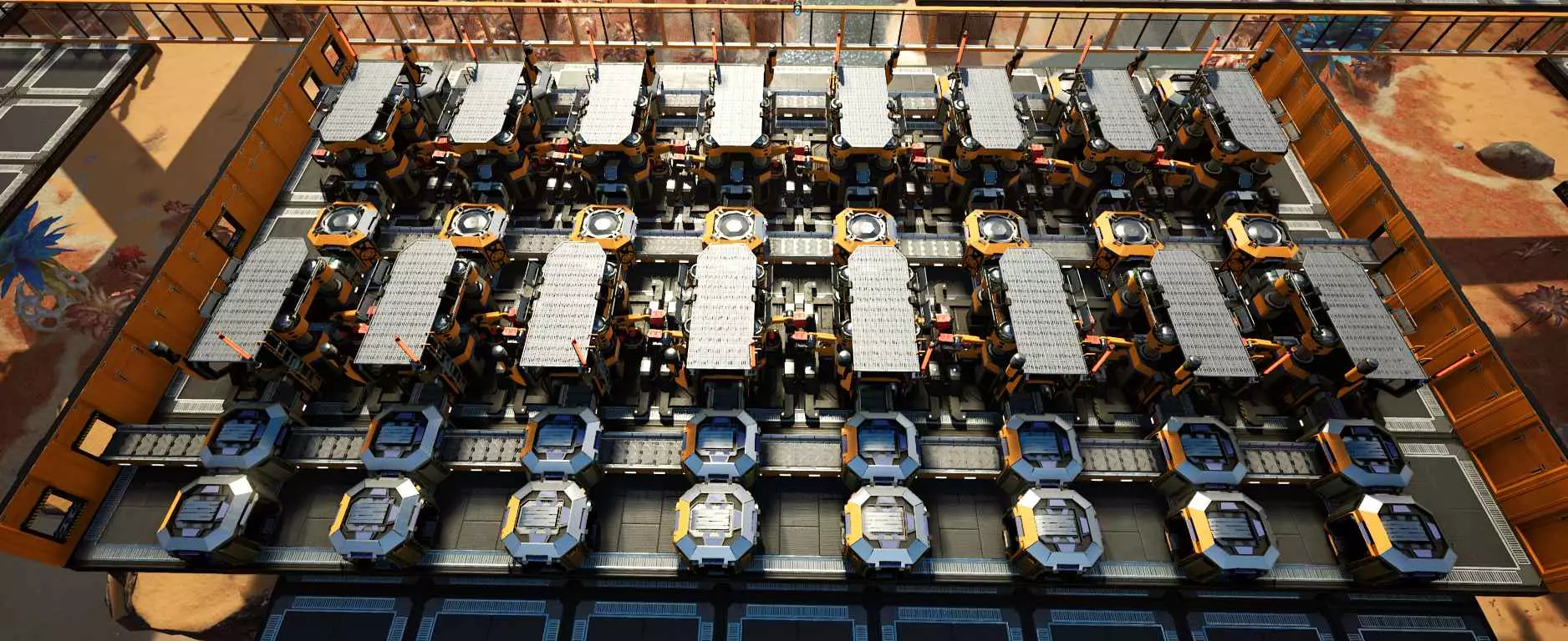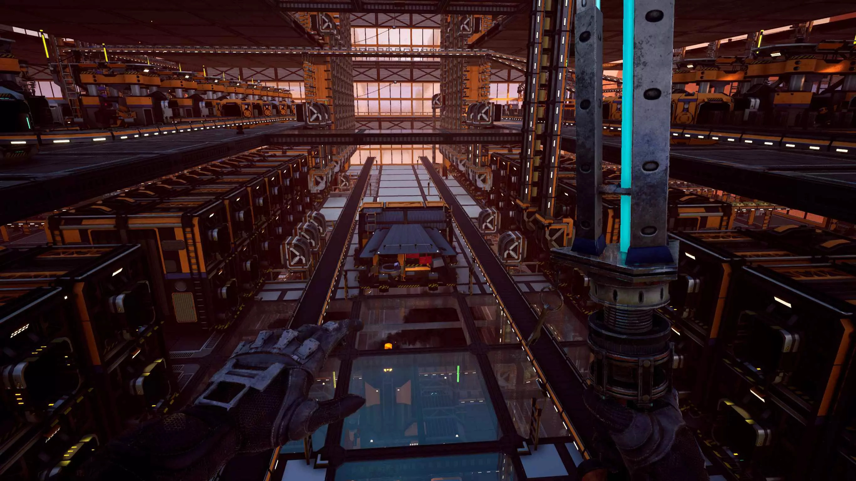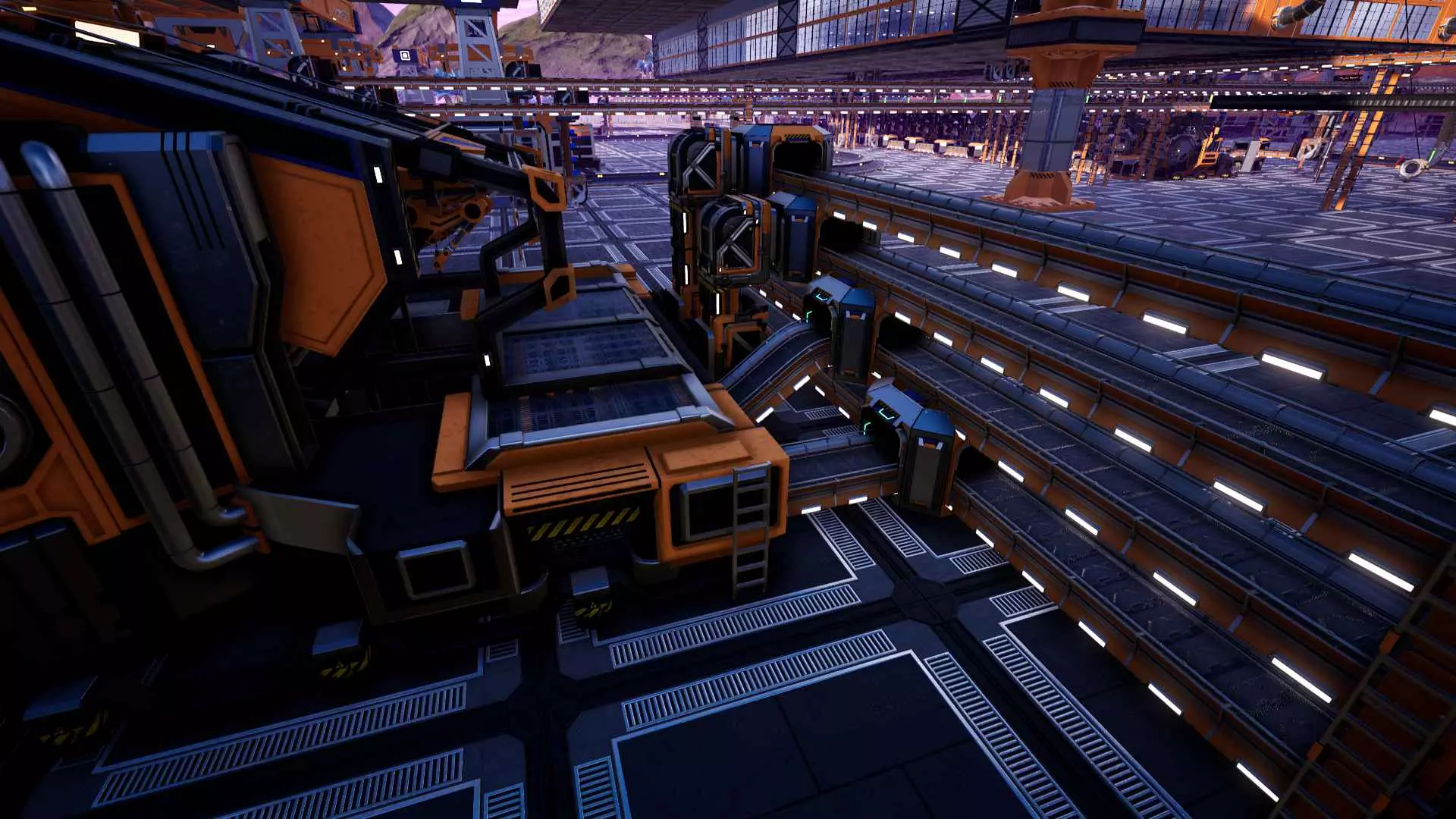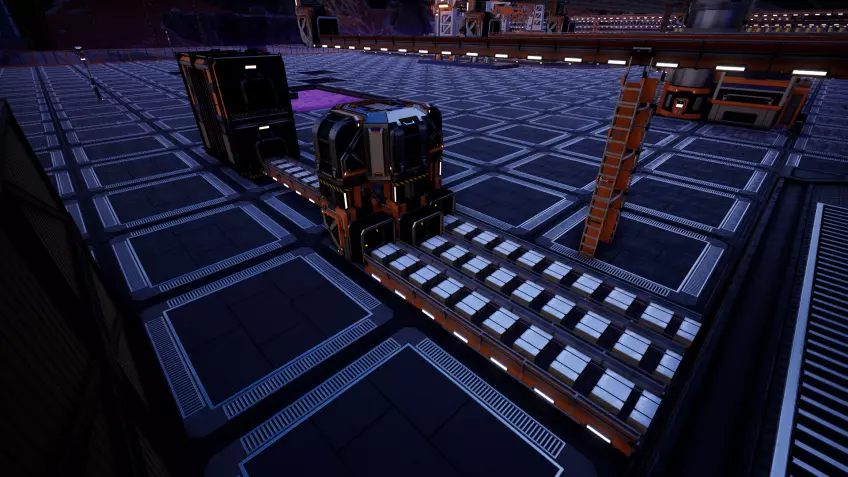 老实说,我不确定厂商是否有意设置这样的垂直间隙,因为网格会穿模到12米高的天花板,但截至更新3,这仍然有效。 截至更新3,可堆叠的传送带支柱不再能相互穿模,但它们仍然可以并排紧贴放置,彼此之间没有间隙。这使得阵列非常紧凑且易于规划,因此交叉的传送带线路可以设置在不同高度,避免碰撞。