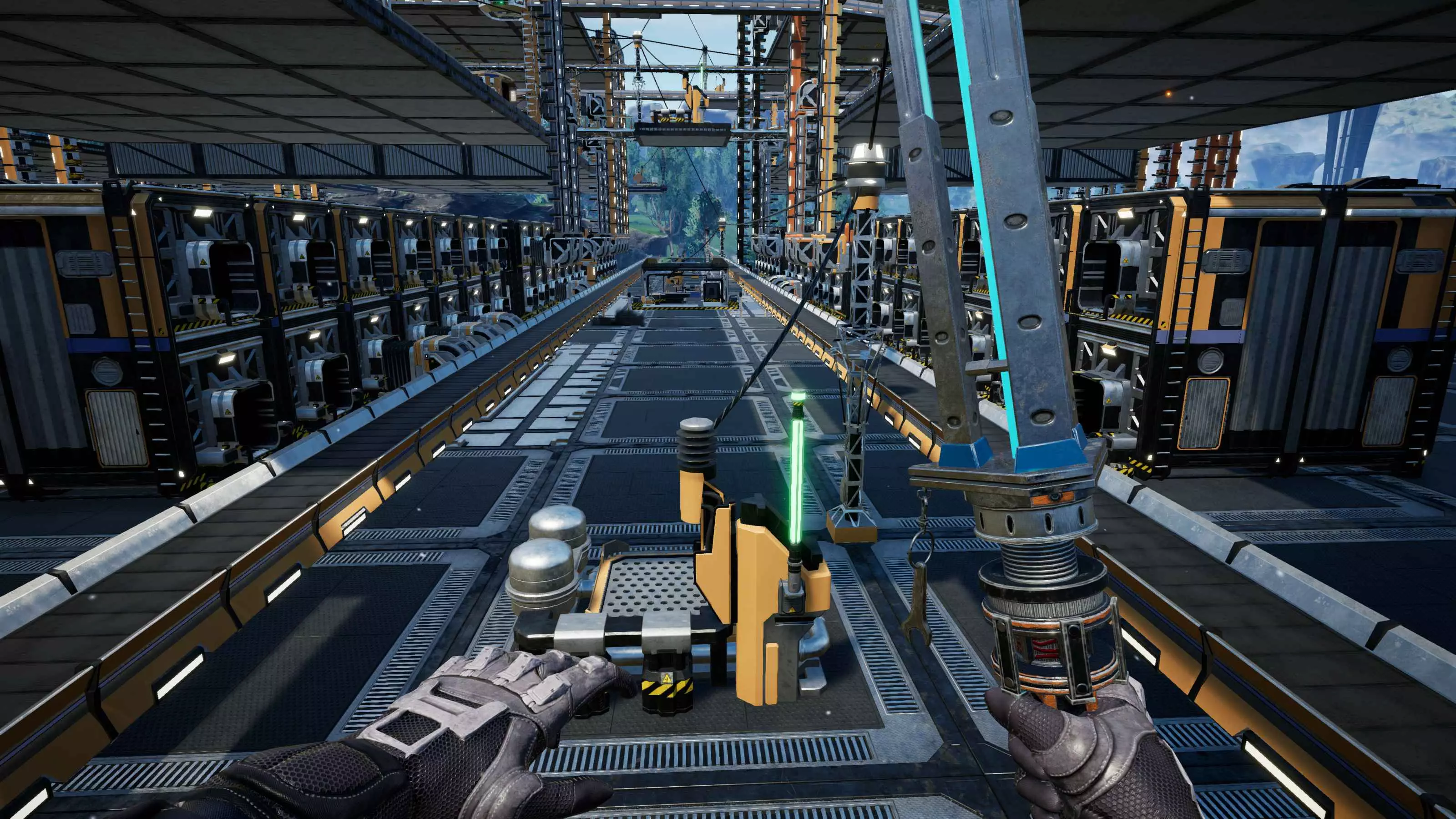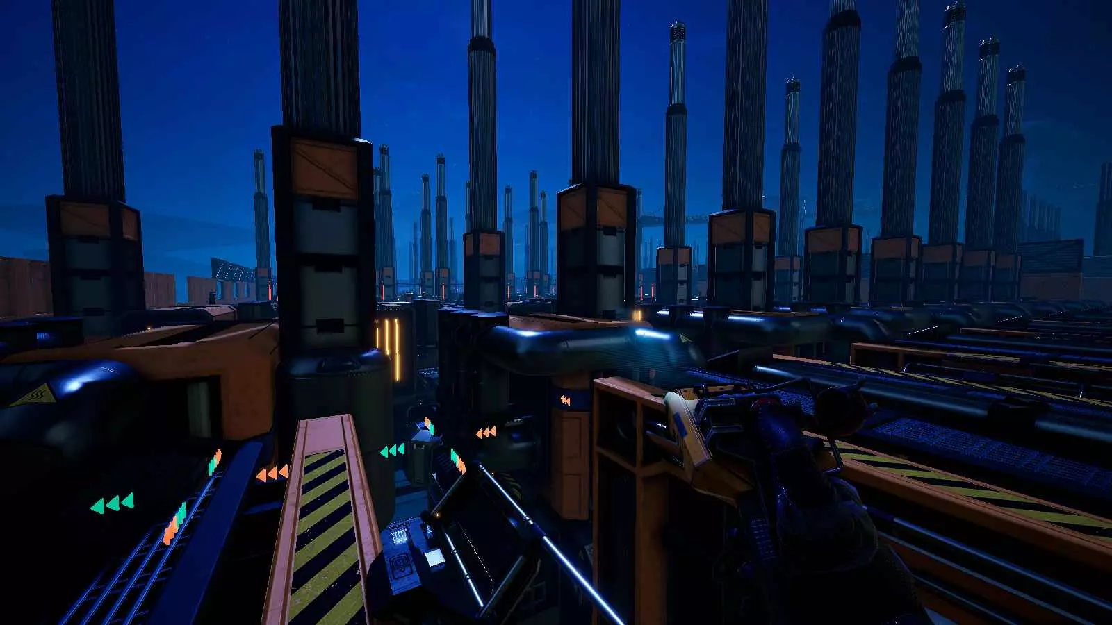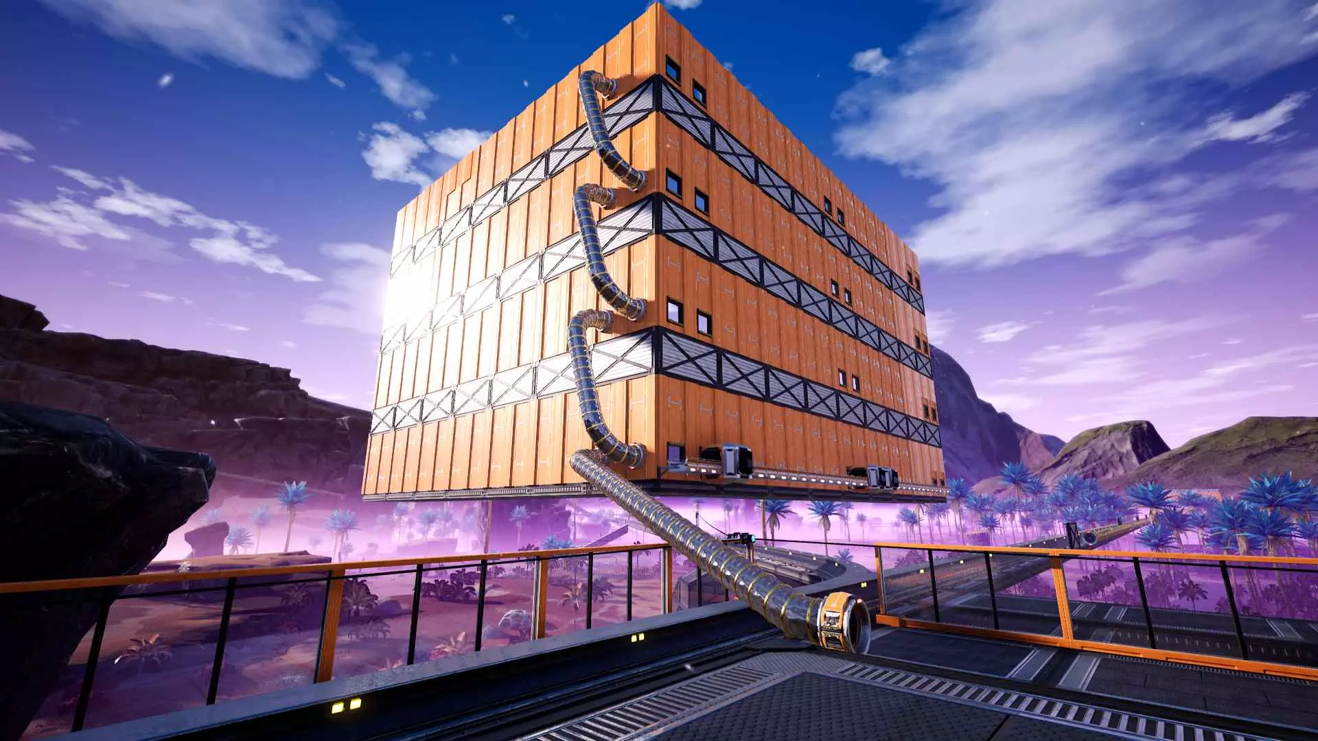 老实说,我不确定厂商是否有意设置这样的垂直间隙,因为网格会穿模到12米高的天花板,但截至更新3,这仍然有效。 截至更新3,可堆叠的传送带支柱不再能相互穿模,但它们仍然可以并排紧贴放置,彼此之间没有间隙。这使得阵列非常紧凑且易于规划,因此交叉的传送带线路可以设置在不同高度,避免碰撞。