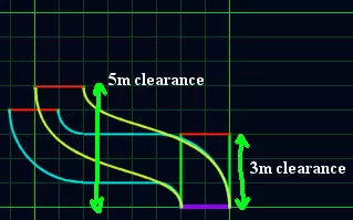 一个可堆叠的传送带支柱(即高度为2米),需要3米的水平间隙,以便直行传送带跨越高度差。