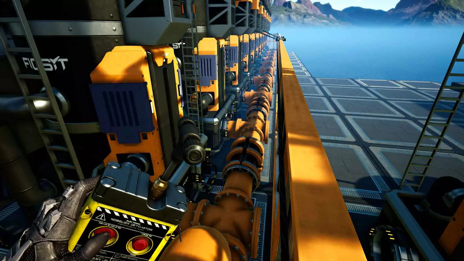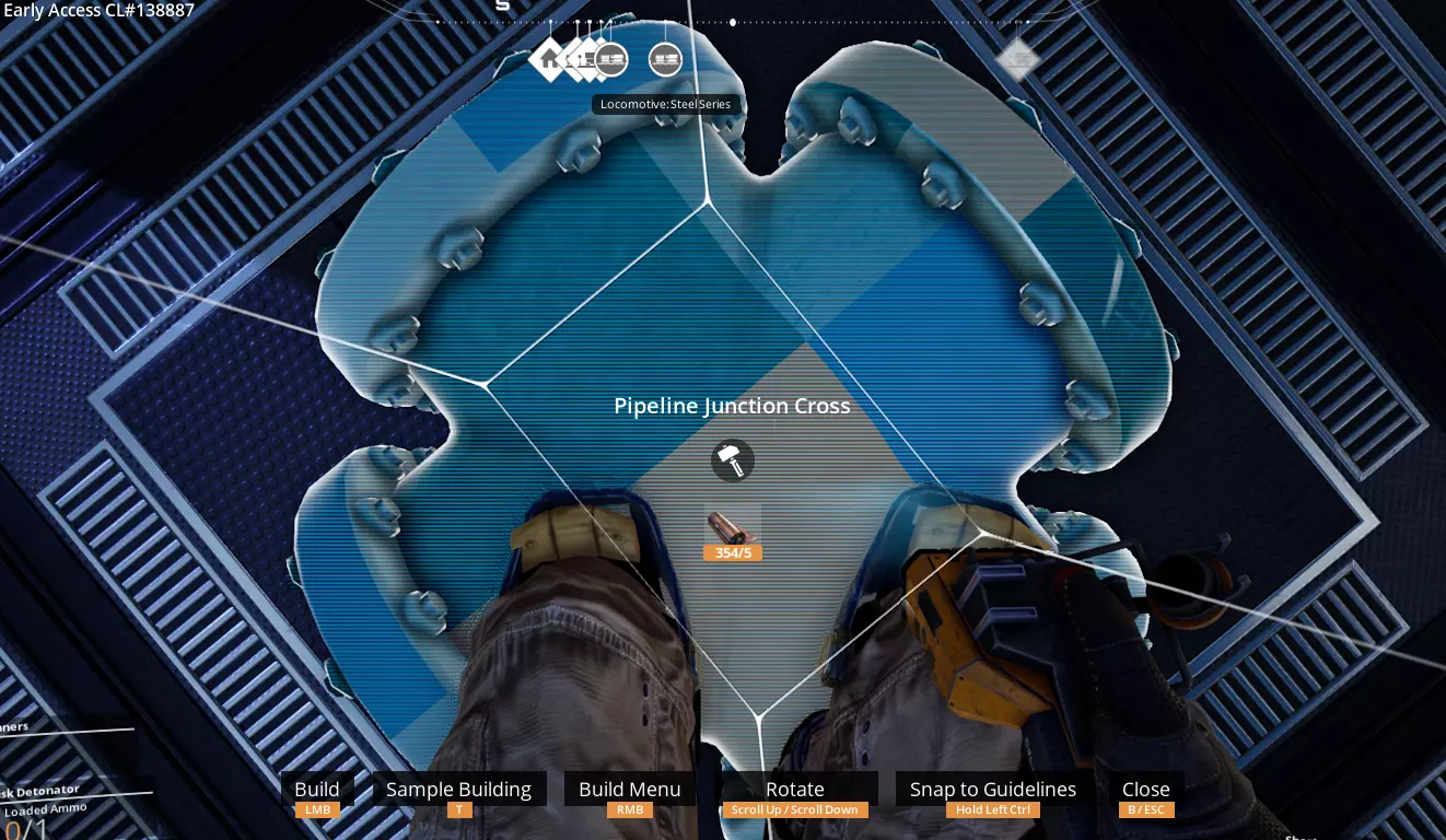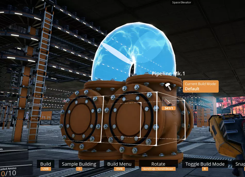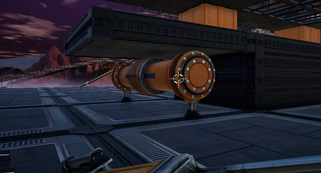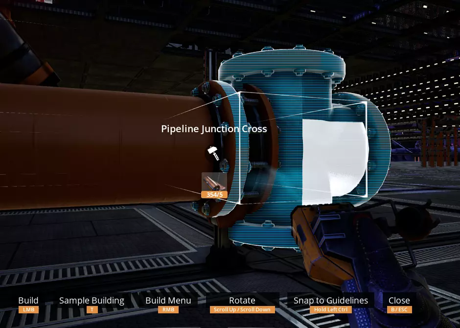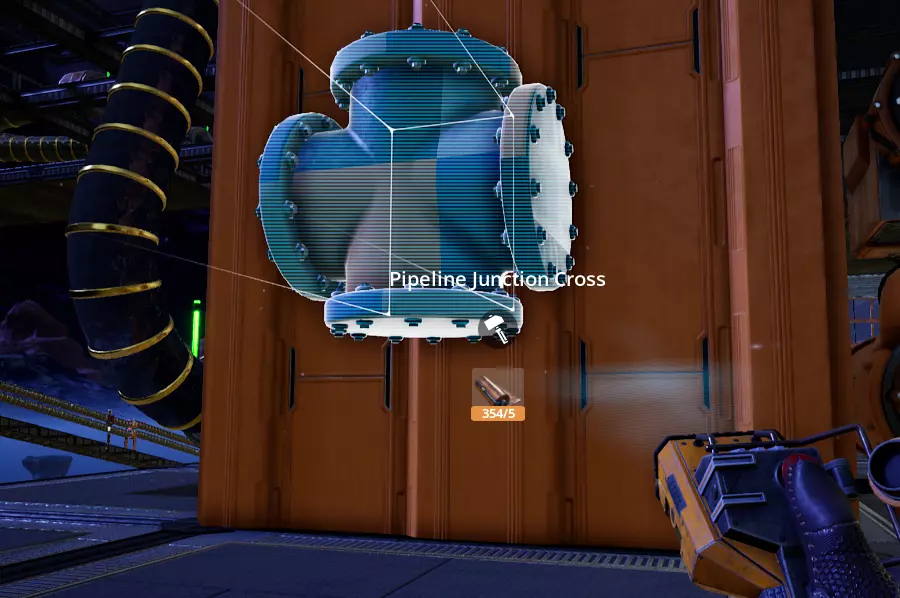 你可以在管道末端放置连接点,包括末端带有支架的管道,不过在这种特定情况下,由于支架的阻挡,瞄准会变得有些麻烦,因为连接点只能吸附在管道末端的一小部分区域。通过这种方式建造的连接点是贴合网格的。 (截至更新3.6版本)目前无法在天花板上建造连接点,这似乎是一个疏忽,尤其是考虑到壁挂式电线杆已进行修改以支持类似操作的情况下:(