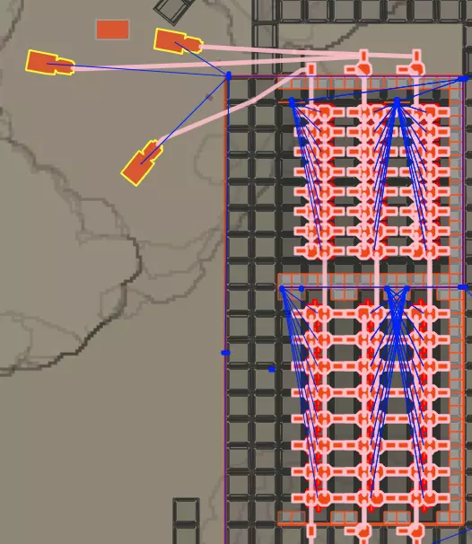 不过我个人不太喜欢这种布局,因为它很难快速对齐(即建造速度较慢),维护和升级传送带也更麻烦,而且与传送带墙不太兼容,因为铺砖与地基尺寸不匹配。 铸造厂 (待办:尺寸、快速对齐放置) (待办:传送带下方布局) (待办:专为钢锭设计的8对6汇流排传送带下方变体布局)