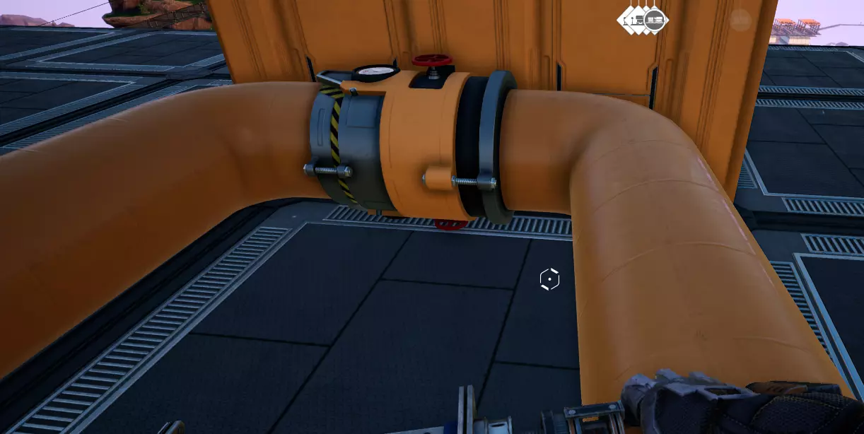 不过,由于每个基础组件通常都遵循这1.75米高度规则(马克1型管道和阀门除外),因此在所有实际应用中,1米网格思维仍然适用于管道的垂直正交布局和建造。这是一个90度垂直弯头,其壁挂安装位置比管道支架“高2米”。
