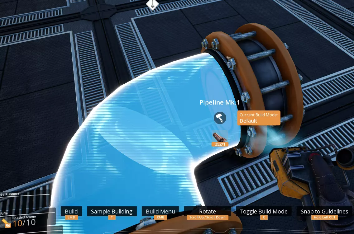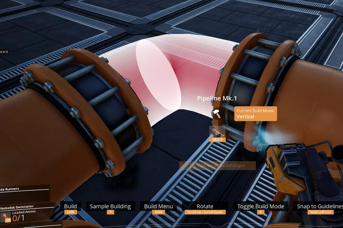 存在一些奇怪的问题,即根据上述规则本应可以建造的管道却无法建造。在这些情况下,通常换个方向建造,甚至切换到传送带模式就能解决问题。