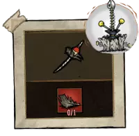 暗影回旋镖可在暗影操纵者(需在伪科学基地制作)处制作。它是麦斯威尔暗影分身的3级物品,拥有85次使用次数,能为玩家提供+10%的移动速度加成,每分钟消耗3.3点理智值。麦斯威尔手持暗影回旋镖时不会损失理智值。该物品的特点是其伤害取决于与目标的距离(距离越远,伤害越高):最低6点伤害(+6点纯粹伤害),最高27点伤害(+27点纯粹伤害)。每次攻击最多可投掷3个回旋镖。除上述内容外,该物品对月球生物造成的伤害提高25%。虚空兜帽在装备状态下,可增加暗影回旋镖的伤害,具体为每次攻击额外附加10%的普通伤害和5点纯粹伤害,并且每次投掷的回旋镖数量从3个增加到4个。该物品在耐久度降至0%时不会消失,可使用虚空修复工具包进行修复。 ●════════════════════════════ஜ۩۞۩ஜ════════════════════════════●