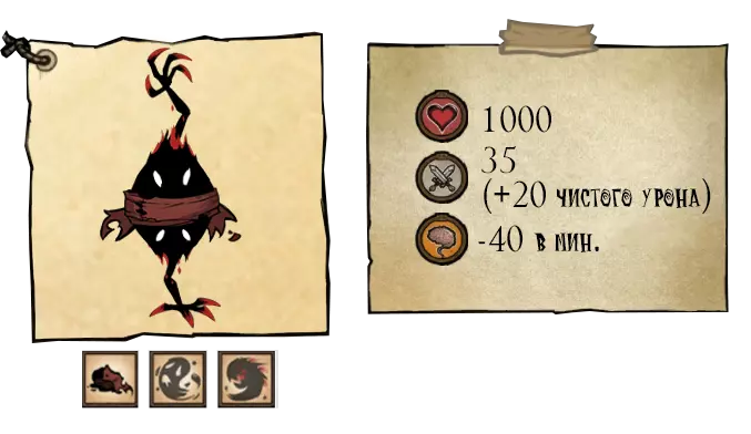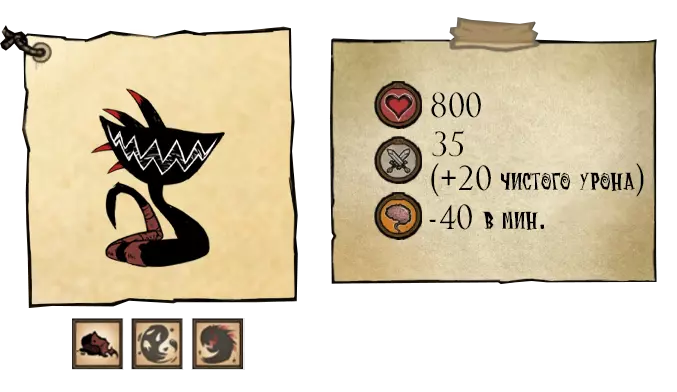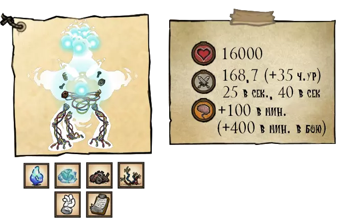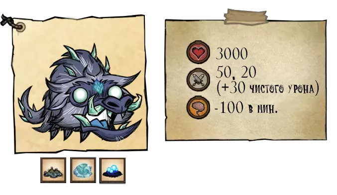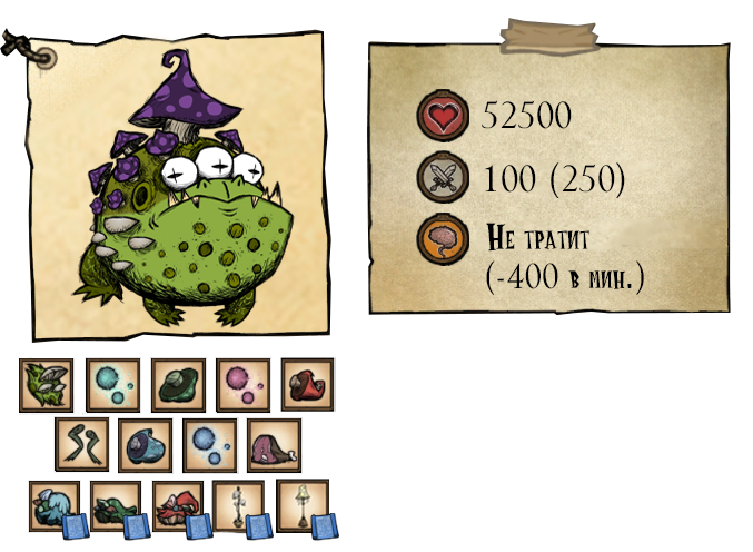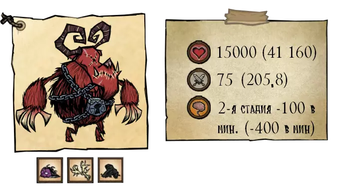 在第一阶段,“幼崽”(Отпрыск)会用一次冲刺攻击来攻击玩家,该攻击会击退玩家并造成168.7点伤害(+35点纯粹伤害)。第二阶段——15200点生命值。“天界幼崽”(Небесный отпрыск)会进行两次冲刺攻击,之后会使用新的攻击——感染。在此次攻击期间,首领前方的所有地面都会被污染,若玩家踩在被污染的区域,将会陷入昏睡状态并快速失去生命值(每秒25点伤害)。 ●═════════════════ஜ۩۞۩ஜ═════════════════●