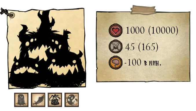 颤抖怪是第一个墨渍怪。它只有一种攻击方式:向玩家方向跳跃,每次落地若命中目标则造成伤害。如果它追上目标,会造成一次伤害后停止。攻击期间,它能够越过路径上的任何障碍物。无法对其施加睡眠和冰冻效果。它的死亡会掉落3-4个暗影碎布、2-3份恐惧燃料和1-2个纯净恐惧。 ●════════════════════════════ஜ۩۞۩ஜ════════════════════════════●