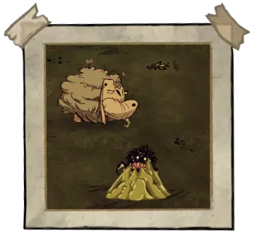 鼻涕虫是《饥荒:联机版》中具有敌意的生物。循着可疑的泥堆追踪,有时会遇到这种羊形生物而非煤球虫。乍看之下它似乎人畜无害,但一旦靠近,它就会朝玩家打喷嚏,使其无法行动。当玩家试图从陷阱中挣脱时,黏液怪会反复发起攻击,它会奔跑并用蹄子进行攻击。被驯服的猪、海狸或另一名玩家可以帮助同伴,使其立即脱困。绵羊不会消失,并且会排泄。其出现概率在第一天为2.5%,到第100天最高可达16.5%。它无法使骑乘 bifalo 或变身 Woodie 的玩家失去行动能力。它死亡后会掉落4块肉、2-3个钢毛以及1-2个多毛芽(可以食用)。 ●════════════════════════════ஜ۩۞۩ஜ════════════════════════════●
