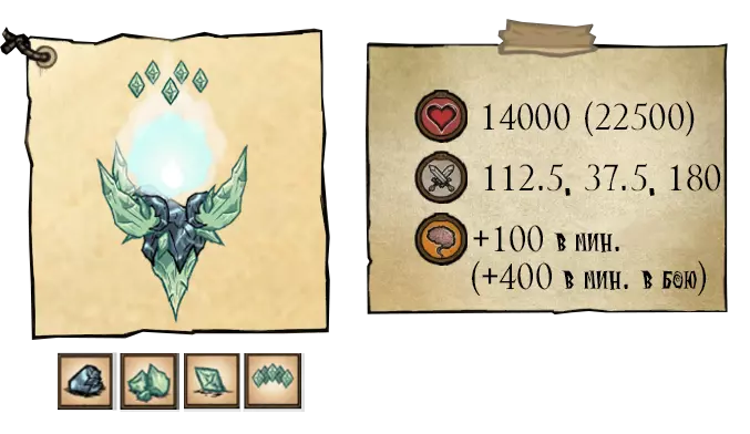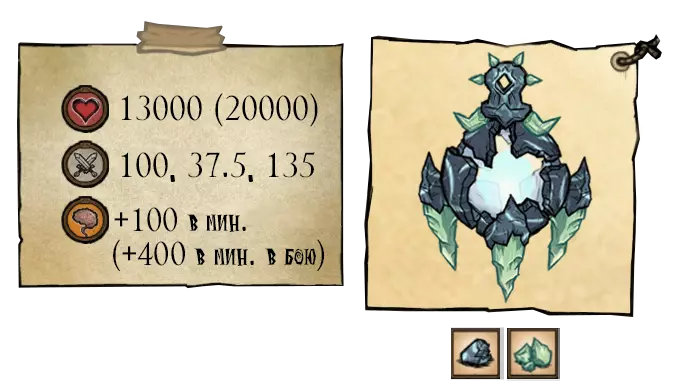 当至少击杀一只宝石鹿后,克劳斯会陷入暴怒状态。该首领体型增大,生命值提升至27440点,伤害提升至205.8。同时会出现负面光环:第一阶段每分钟-100,第二阶段每分钟-400。进入第二阶段时,克劳斯会死亡,但会借助生命护符复活。巨人身上的锁链断裂,周身浮现出负面 aura,发动用嘴猛咬腹部的突袭攻击。 ●════════════ஜ۩۞۩ஜ════════════● ●════════════════════════════ஜ۩۞۩ஜ════════════════════════════● 击败头目后,宝石鹿挣脱枷锁恢复常态。它们的掉落物为红色和蓝色宝石。击败 Boss 后会掉落成熟鹿的角,需要将其用于装有“善良”的袋子上。之后鹿角会剩下碎骨,袋子则会打开。从袋子中会掉落 4 个装有战利品的卷轴: ●════════════════════════════ஜ۩۞۩ஜ════════════════════════════●