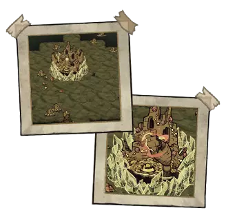 在《咩咩启示录》与《饥荒:联机版》联动后,现在在绿洲中打捞破损包裹时,有机会获得红色王冠。将这顶王冠交给蚁狮,它会作为交换给予3个新图纸:谦卑羔羊偶像、金色地砖以及作为砖块路复刻版的砖砌地砖。关于合作的更多详情,请参阅本指南:https://steamcommunity.com/sharedfiles/filedetails/?id=3021968559