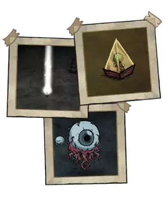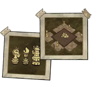 暗影象棋 - 包含3种暗影象棋版本。最终Boss只有1个剩余的象棋棋子,在此之前所有棋子均不视为Boss。它们从已收集的大理石雕像中生成。玩家需要用锤子凿出大理石象棋棋子的轮廓形状,并收集缺失的碎片:车的鼻子、马的头、象的头。所有这些碎片都散布在游戏世界中。当收集齐所有棋子后,需要等待新月出现:第1、21、41、61、81天等,前提是未对月相周期进行过干预(如击杀天体冠军和/或使用薇克伯顿的书)。夜晚,国际象棋棋子雕像将开始晃动,玩家需要用锤子敲击其中一座雕像,以召唤 Boss。大理石棋子碎片的数量可能不止每种一个,如果世界上存在其他可以单独召唤同一种大象和马的地点。拾取大理石棋子碎片后,它会装备到护甲槽中,并使角色减速85%。为了高效运输,可以使用驯服的比法罗、充能的沃尔夫冈、沃比的大型形态以及旺达的传送门。如果在满月(11-31-51-71-91等)而非新月期间破坏修复好的国际象棋雕像,那么不会出现暗影象棋,而是会出现机械装置,并且从雕像碎片中会掉落陶轮的设计图(在新月召唤 Boss 时也会掉落设计图)。玩家可以使用草图制作国际象棋棋子雕像,这样就能在新月时于任意方便的地点召唤 Boss(破坏雕像时需使用锤子而非镐子)。击败 Boss 可获得暗夜盔甲、暗影剑、4-6 个恐惧燃料以及暗影之心(用于召唤活骷髅或暗影坐骑)。●════════════════════════════ஜ۩۞۩ஜ════════════════════════════●