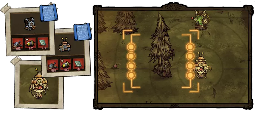 如何召唤V.O.I.N.B.O.T.?击败3个被感染的首领(水晶独眼巨鹿、装甲熊獾和被控制的座狼)后,瓦格斯塔夫会搬到螃蟹隐士所在的岛屿居住。靠近新的站台(思维制造机)后,玩家面前会出现一位科学家。他会请求玩家帮助他进行研究。首先,为了帮助沃格斯塔夫,需要将一张画有猴子岛的地图卷轴交给螃蟹隐士,之后她就会搬到那里居住。这张卷轴是在制图桌制作的,制作时要求玩家已探索过猴子岛。 ●════════════ஜ۩۞۩ஜ════════════●
