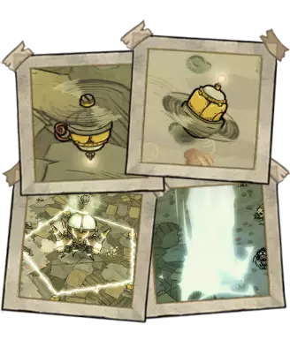 蚁狮会在夏季第4天首次远程攻击,后续攻击时间会提前0.33天。在地面上,这个首领(Boss)会用魔法漩涡攻击玩家,这些漩涡会摧毁建筑,在生成时造成伤害,并且玩家在上面移动会变慢。攻击前,脚下的地面会开始震动,角色也会察觉到有情况发生。卡尔斯特漏斗无法手动移除,它们会在30-33天后自行消失。洞穴中的首领不会使用漏斗攻击,而是改用冲击波。冲击波可以被移动或摧毁。从天花板发动攻击前,会先开始掉落沙子。 ●════════════ஜ۩۞۩ஜ════════════●