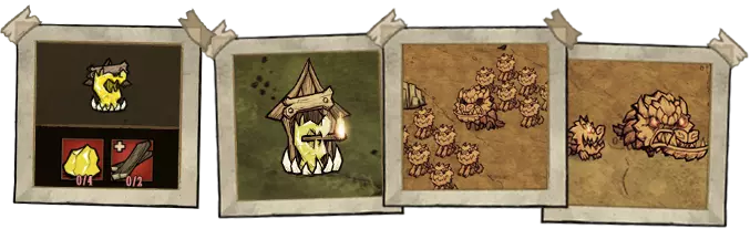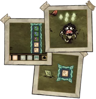 “恩塔偶像”是一种特殊物品,只有伍迪学习了“恩特行者III”技能后才能制作。将其在营火或地面上焚烧时,会将周围最多2棵云杉树(非栗树或桦树)转化为恩特,转化方式类似于常规砍树时出现树精的机制。
