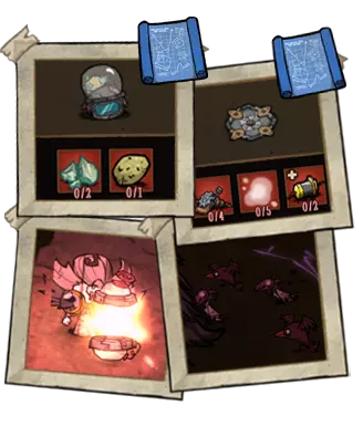 挖掘号角 - 一种可用于创建储物空间的物品。拥有3次使用次数,能生成一个巢穴,该巢穴具备12个物品栏位,功能与麦斯威尔的储物箱相同。2分30秒后,巢穴将会消失。当玩家打开储物空间时,巢穴的计时器会暂停。