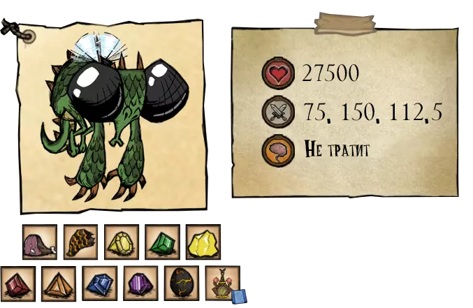 蔬果蝇之王是出现在菜园中的 Boss。当 1.5 格范围内存在至少 15 株完全成熟或腐烂的植物,且时间在第 35 天之后时,它才会出现。该 Boss 不会远离生成地点,并有一种攻击方式。每当作物腐烂时,其出现时间就会增加半个游戏日。蝇王最多可召唤4只果实蝇,这些果实蝇在 boss 自身死亡前不会攻击角色。果实蝇会降低植物的幸福度,增加压力值,并在空槽中种下杂草。boss 的重生时间为20天,每次作物腐烂时,该时间会增加半个游戏日。击败 Boss 后会掉落叶片肉、友好苍蝇之果以及 4-8 颗随机特殊种子,种子种类取决于季节。友好苍蝇之果只会掉落一个,若未腐烂则不会再次掉落。 ●════════════════════════════ஜ۩۞۩ஜ════════════════════════════●