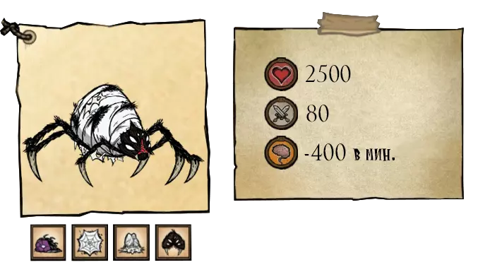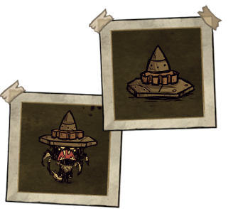 蜘蛛帽——一种能控制蜘蛛但无法控制蜘蛛女王的物品。它每分钟会消耗2点理智,耐久度可持续2分钟。佩戴该帽子后,玩家周围的10只蜘蛛将为其作战。若摘下帽子,附近所有蜘蛛会立即对玩家变为敌对状态。