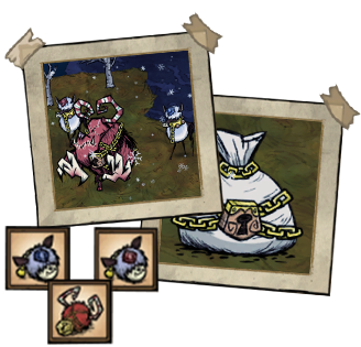 在“冬季盛宴”活动期间,克劳斯将拥有彩色的角,身上和袋子上的锁链为金色,而宝石麋鹿则长着白色的皮毛。袋子每20天刷新一次,在任何季节都能遇到。掉落物将不再是卷纸,而是礼物。此外还会额外掉落2个礼物。