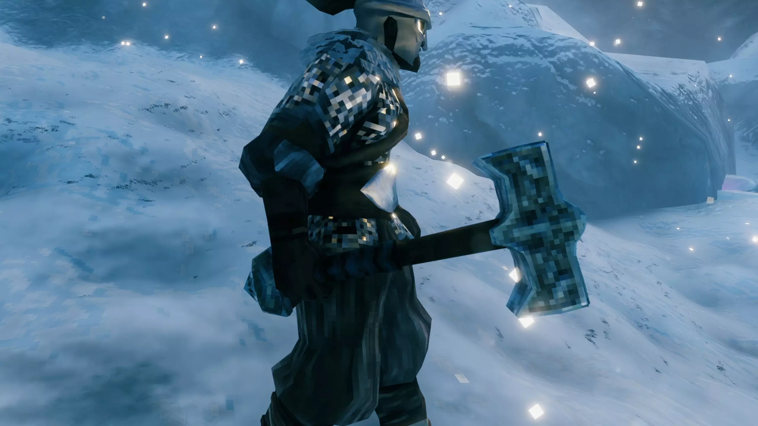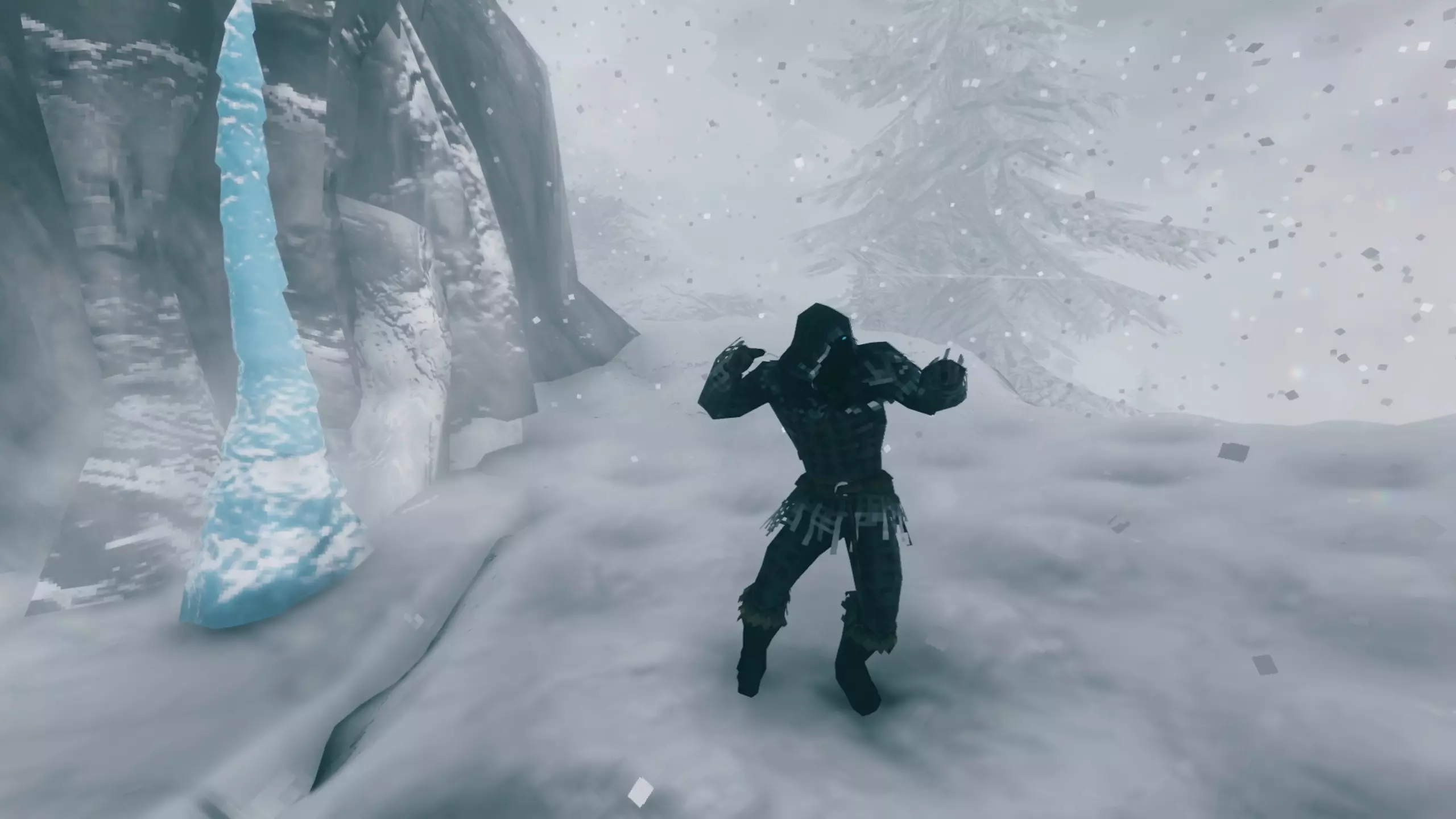 让我们按部就班来! 描述 雪山是游戏中首个完全被冰雪覆盖的生物群系,因此毫无准备的旅行者在这里将会举步维艰。这一切都归咎于寒冷负面效果——如果玩家未携带必要物品就来到这里,就会受到该效果影响。此外,还有能见度极低的暴风雪,敌人可能会借此出其不意地袭击你,尤其是在夜间。为了抵御严寒,在攀登前必须饮用抗寒蜂蜜酒。