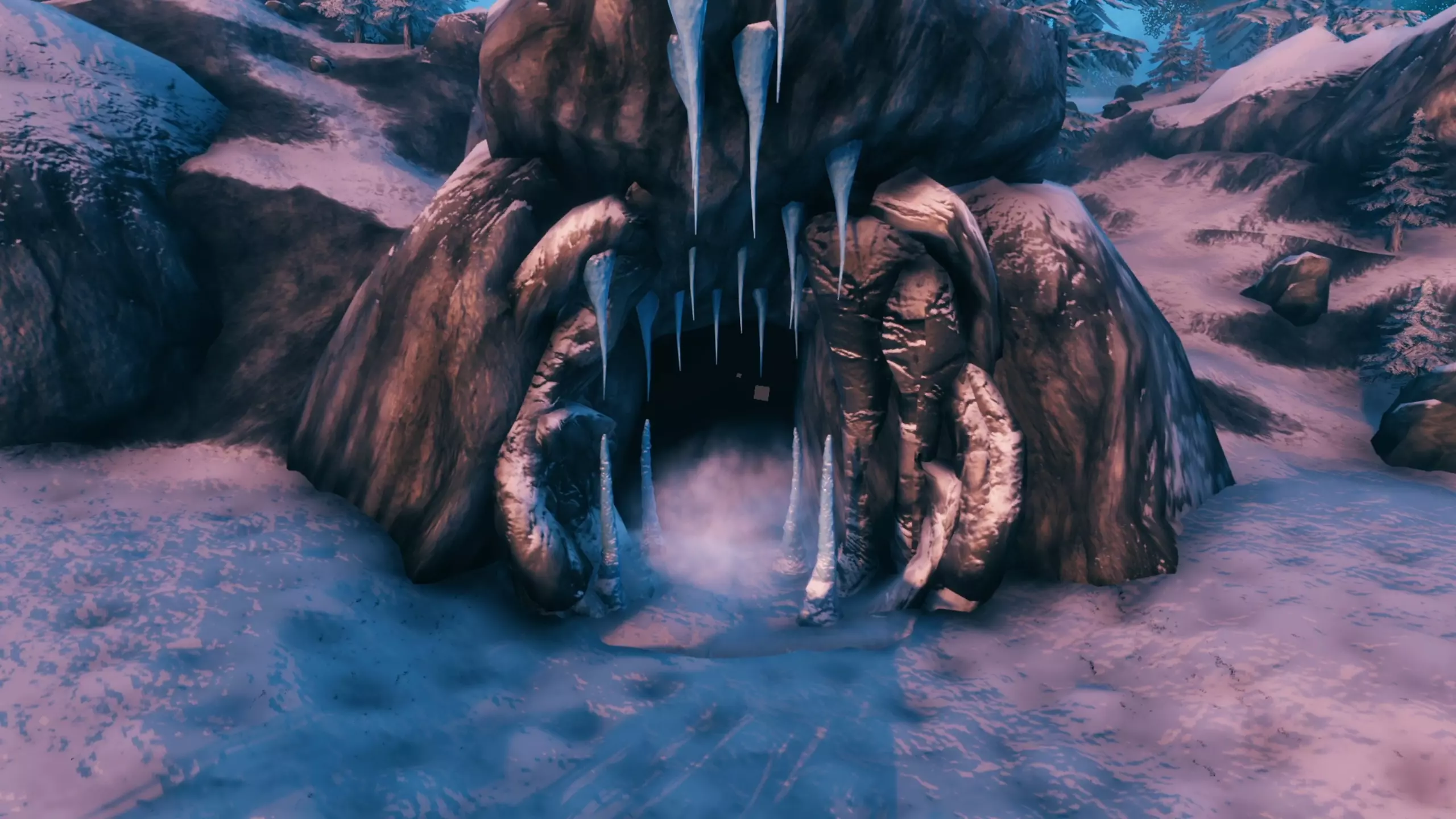 冰洞从外面看有点像巨魔洞穴,只是洞口挂着巨大的钟乳石。洞内有一面冰墙,打破它就能通往洞穴深处。所有洞穴都是程序生成的,因此每个洞穴都是独一无二的。在这里你可以找到我在资源部分提到的水晶,以及芬里尔之毛。它可能出现在任何地方,但最常掉落于有狼头石像的房间。这里还会有芬里尔之爪以及大量肉块,从中可以获得材料和贵重物品。狼毛可用于制作芬里尔套装。