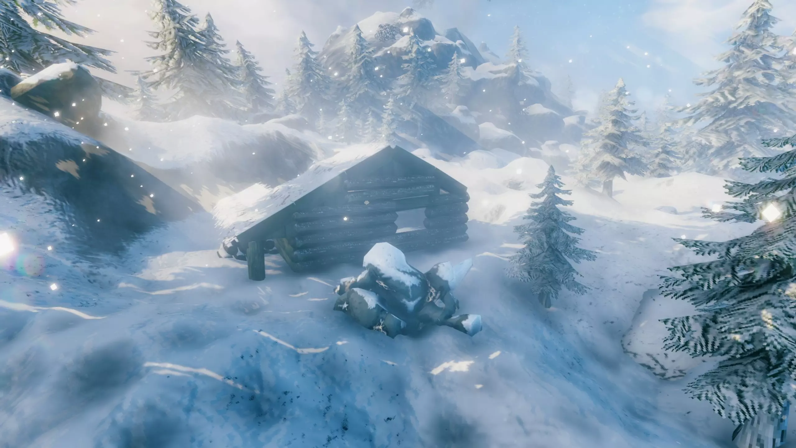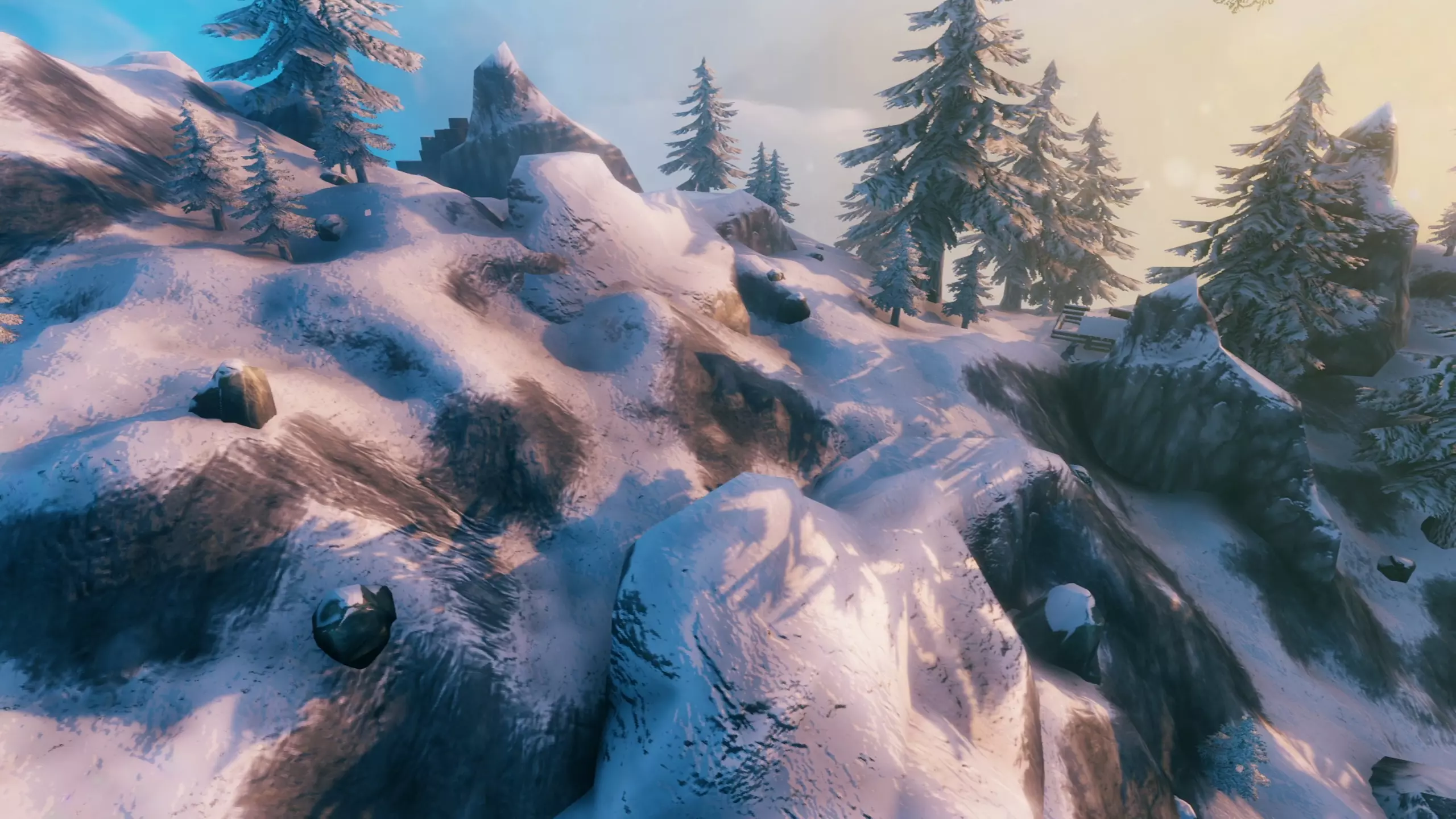 通常这个区域的介绍总是从描述植被开始,但这里的地表却被白雪覆盖,因此很遗憾,无法对植被进行描述。 这座山也没有什么独特的树木,只有我们熟悉的低矮和高大的云杉。 此外,这是唯一一个不会提供任何地面食物的生物群系,没有蘑菇,没有浆果,也没有类似的东西。唯一的例外可能是洋葱种子,但它们同样不会在任何地方生长,只能从位于当地建筑内的箱子中获取。 箱子内容: