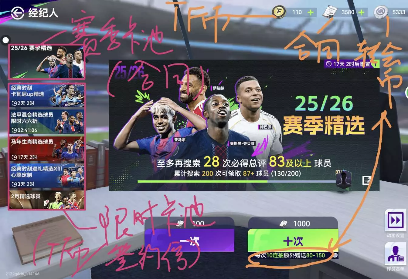 经纪人:消耗合同(赛季球员池)和TF币(氪金)