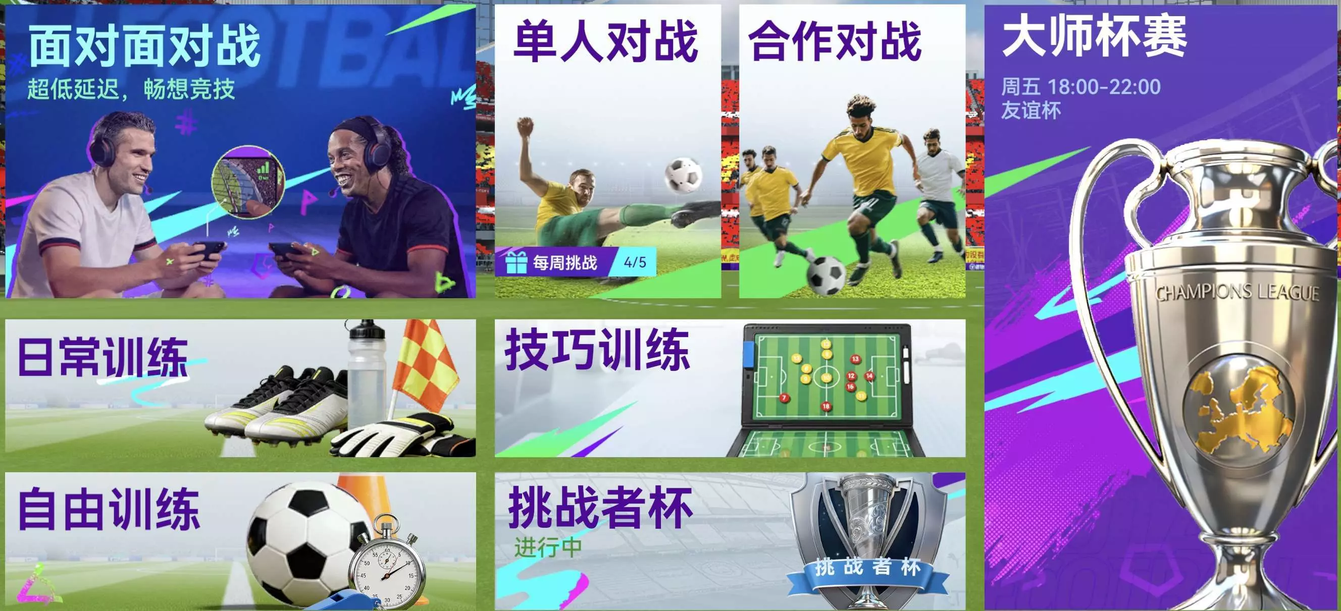 即玩家在线手动模式对战。若常规(游戏中)90分钟打平,会有加时(30分钟)+点球大战,是对于技术和心态的双重考量!
