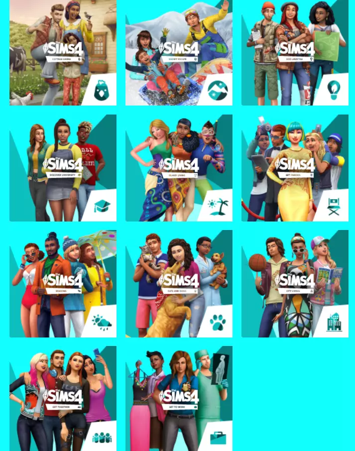 扩展包 《模拟人生4:来去上班》- 来去上班为你的模拟市民引入了一些新的职业选择,额外的亮点是你可以跟随他们去上班。 《模拟人生4:星梦起飞》- 核心是获得名人地位和粉丝。 《模拟人生4:绿色生活》- 顾名思义,这个扩展包主要侧重于更加环保的生活方式。 《模拟人生4:乡间生活》- 对于喜欢 farming 和 cottagecore(田园风格)的玩家来说,这是一个值得考虑的扩展包。乡间生活通过让模拟市民基本上以土地为生并饲养牛、鸡等动物,为标准游戏玩法带来了新的变化。《模拟人生4:玩转大学》——不出所料,这款资料片为游戏增添了大学生活内容。 《模拟人生4:都会生活》——如果你想租住小公寓,享受城市的喧嚣,而非在郊区拥有一栋房子。 《模拟人生4:海岛生活》——岛屿世界呈现出更轻松惬意的氛围,让你沉浸于周围的环境之中。 《模拟人生4:同欢共乐》——创建并加入具有独特兴趣、个性和风格的俱乐部,你可以制定规则、定义外观并自定义他们的聚会场所。 《模拟人生4:猫狗总动员》——正如其名,你可以拥有并自定义你的新宠物。 《模拟人生4:雪国胜地》——拥有类似日式风格的木漏日山这样被白雪覆盖的世界。《模拟人生4:四季》——日历功能为《模拟人生4》带来了重大变革,新增了四季(包含天气、温度和季节性活动)。