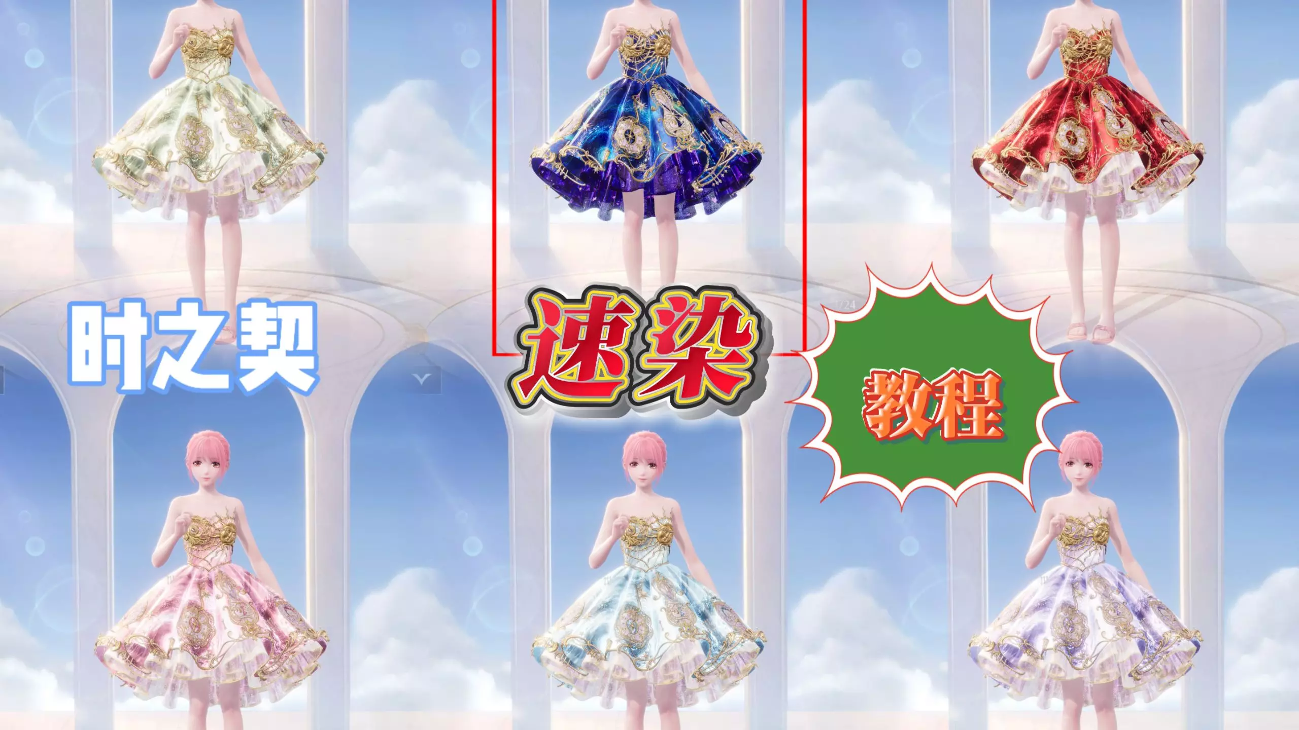 裙子推荐绿色、棕色、粉色、紫色色盘第一排第一个,蓝色、黄色色盘第二排第一个,鞋子只有饱和度低一点的颜色染出来比较好看(拔一下),头发的纯色染色都很绝美!虽然头饰…