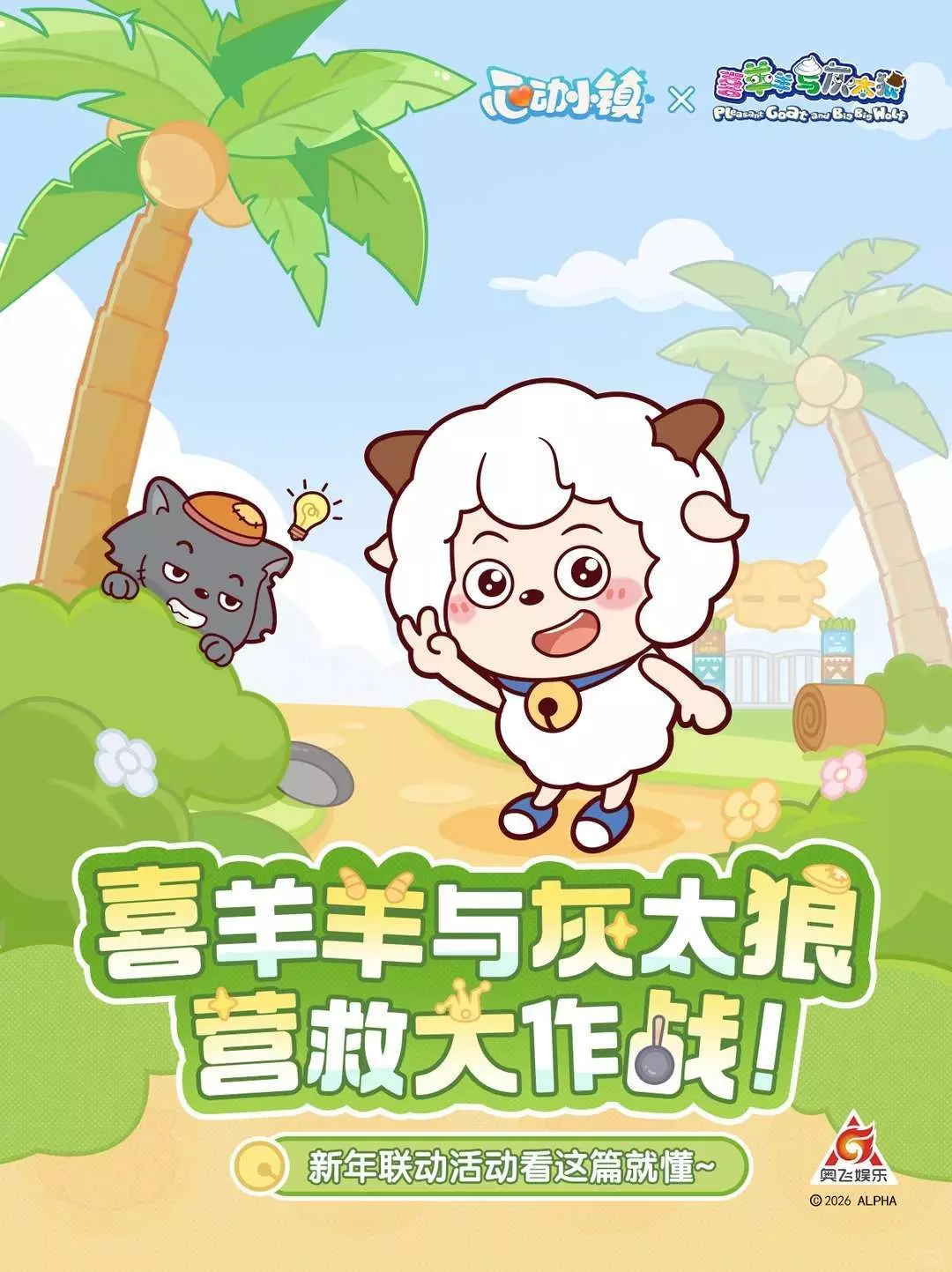 2月14日至3月15日,喜羊羊与灰太狼新年联动即将开启,羊羊和狼狼在青青草原等你一起开启营救大作战啦~
