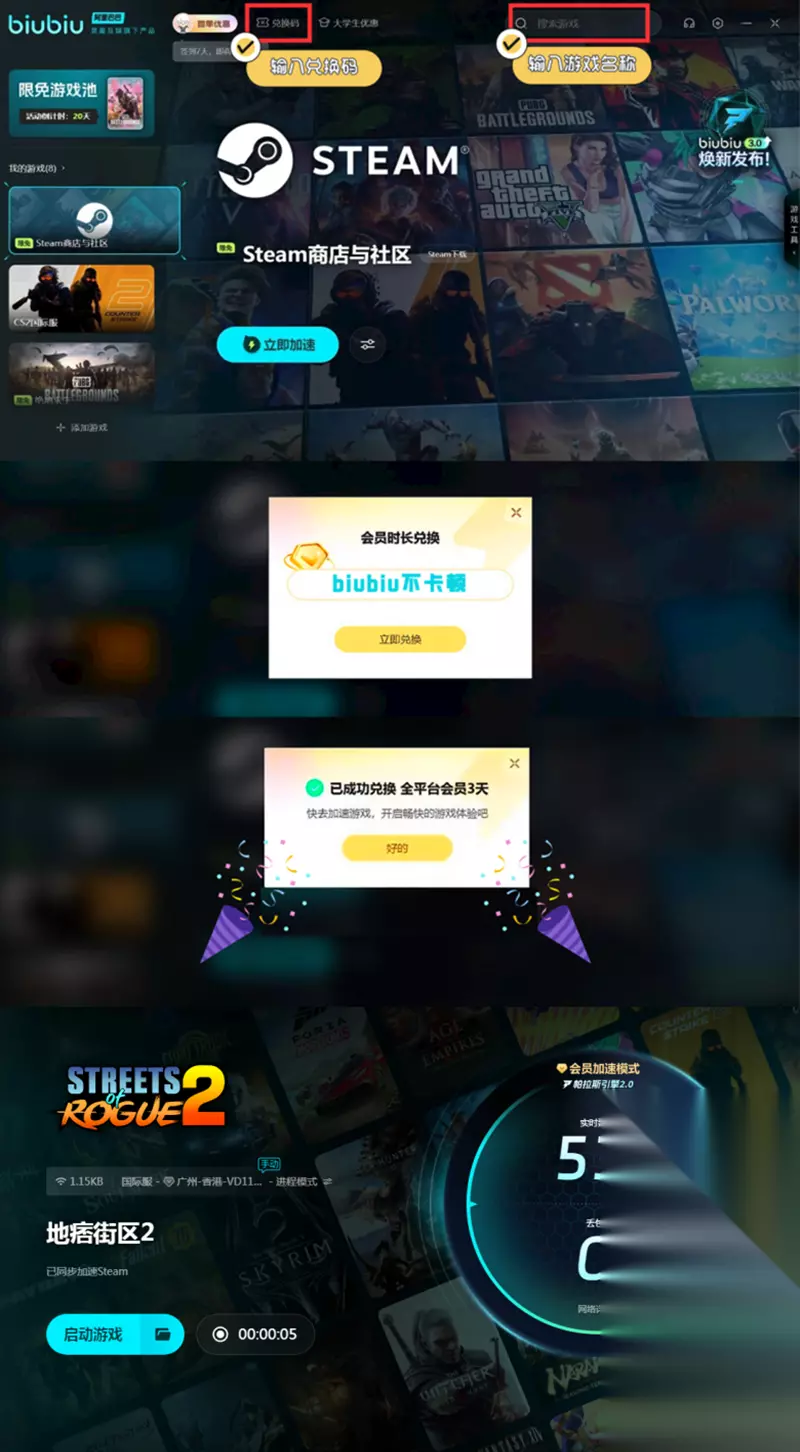 还有一个困扰,很多玩家的地方就在于自身容易出现载入慢或者是卡顿的问题,其实这些能通过biubiu来优化解决。现在先注册一个新号,打开biubiu利用赠送的三小时会员时间感受一下具体的效果。为了回馈用户,biubiu还推出了另外一项通用福利,每个号都能输入【biubiu不卡顿】,来得到三天会员时间。这样大家无论是单人体验游戏还是联机和好友一起在世界中冒险都会变得轻松很多。游戏采用的是程序随机生成的模式,来制作一个非常庞大的开放世界,能够自由去选择不同的角色职业。利用这些职业的独特能力,按照自己的想法去自由地进行各种操作,只要能达到自己的目的,能够进行很多有创意的尝试。