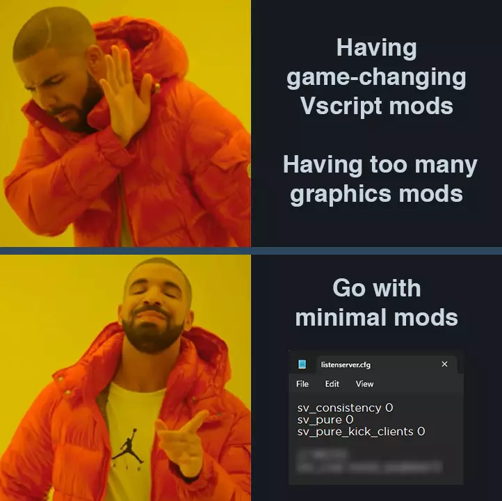 创建你自己的服务器 如果由于某些原因,服务器浏览器方法仍然无法满足你,或者有些恶意玩家不断骚扰你,你可以选择创建自己的服务器。这样做对你更有利,因为你将成为服务器的主机,这意味着你对连接的客户端拥有管理员权限。如果你发现早期迹象,可以负责将任何人踢出服务器,或者对他们进行反击。 不过,我们不要混淆概念。既然我们讨论的是如何寻找官方服务器,这里有一个关键点:你的服务器绝对不能安装任何Vscript模组。要知道,如果你安装了一些改变游戏玩法或机制的模组,那么你的服务器就不再是官方服务器的复制品了。如果你不确定这款游戏中的模组类型,可以参考本指南。管理系统是个例外,只要你不触发那些会给自己或他人带来优势的指令就行。当然,在游戏玩法方面,我们要确保对所有人都公平。 开服小贴士 大多数人会选择本地服务器,因为创建速度更快、操作更简单,而且完全免费。关于如何搭建专用服务器,已有单独的指南可供参考,这里就不详细说明了。但有时候,你可能确实找不到官方服务器,比如在欧洲地区,这种情况下就只能自己开本地服务器了。不过无论如何,以下是一些我推荐的小贴士: 客户端方面不要安装过多模组。尤其是当你同时进行游戏和开服时,引擎的负载会变得很重。游戏会在随机时间崩溃,这是主机需要注意的问题。虽然官方战役通常很少崩溃,不像自定义战役那样频繁崩溃,但还是要做好准备。如果你发现游戏崩溃,可以减少或限制高清或高多边形模组的总数。如果你注意到没人加入你的服务器,这可能是有什么东西阻止了他们加入。作为主机,你可以尝试在服务器上禁用一致性检查。禁用后,客户端可以使用自己的客户端模组,而不必严格匹配你的模组,这样如果他们没有你的模组也不会被自动踢出。将以下命令放入你的监听服务器配置文件中,或者直接使用这些命令作为替代方案。 sv_consistency 0 sv_pure 0 sv_pure_kick_clients 0