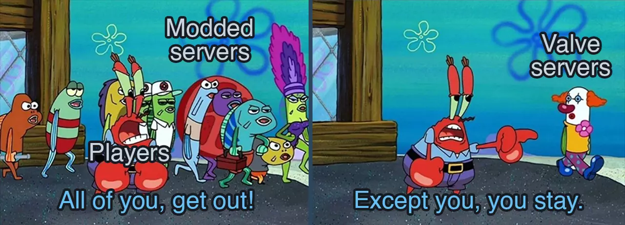 一些实用提示 以下是一些可能有助于避开这些模组服务器的技巧: 连接服务器时,注意加载屏幕左下角的玩家名称。如果你在那里看不到自己和其他真实玩家的名字,那么这很有可能是一个拥有大量玩家槽位的模组服务器。你可以立即使用之前设置的快捷键离开。加入服务器后,你可以通过控制台命令查看服务器名称/主机名。通常,Valve服务器的名称会包含Valve、游戏标题、地区和srcds编号,非常明显。同时也要注意服务器使用的操作系统,Valve服务器始终使用Linux Dedicated(Linux专用服务器)。如果你在其中看到“Windows Dedicated”,那一定是一个模组化专用服务器(它们也可以有“Linux Dedicated”,但在此情况下主机名更为重要)。而“Windows Listen”则是本地服务器。控制台命令如下:status。为了配合“无一致性检查”并出于安全考虑,建议在客户端的多人游戏设置中禁用“自定义服务器内容”。其作用是不允许下载你所连接的自定义服务器内容。可能存在一些你未察觉的隐藏内容,甚至更危险的东西。或者,也有一个相关命令:cl_downloadfilter "none"。有些人会使用“捷径”方法,即通过恶意破坏行为,立即被模组服务器封禁。请注意,部分服务器已安装自动封禁违规玩家的插件,因此你只需在聊天框输入命令!banme即可,无需采取其他方式。你可能会伤害到那些因某些原因搭建本地模组服务器、本就内心敏感且痛苦的人。