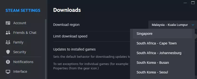 实际上,服务器配置文件中有很多有趣的内容可以调整。如果我有心情的话,可能会在另一篇指南中详细介绍。本地服务器是你与随机玩家游玩官方战役的最后选择。而对于自定义战役来说,这是可以接受的。 更改下载地区 有些人认为在Steam设置中更改下载地区到其他国家可以改善匹配效果,真的是这样吗?虽然这确实有效,但有时反而会更糟。选择该地区后,你会连接到距离你稍远的服务器,因此延迟也会更高。至少你不会再在快速匹配中看到模组服务器了,对吧?如果你想要的就是这个,那它确实有用。如果非要给建议排个名的话,这甚至比创建自己的本地服务器还要糟糕。就算你加入别人的本地服务器,延迟可能也差不多,那我和你之间又有什么区别呢?