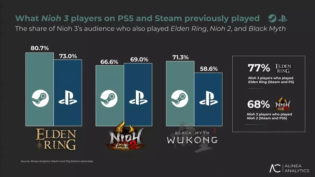 Team Ninja的《仁王3》发售后似乎取得了亮眼的市场表现。Alinea Analytics估算该作在PS5与PC平台发售四日内销量突破70万份,据报创造超5000万美元总收入。据称Steam平台贡献了最大销量份额(56.1%),PS5平台占比43.9%。